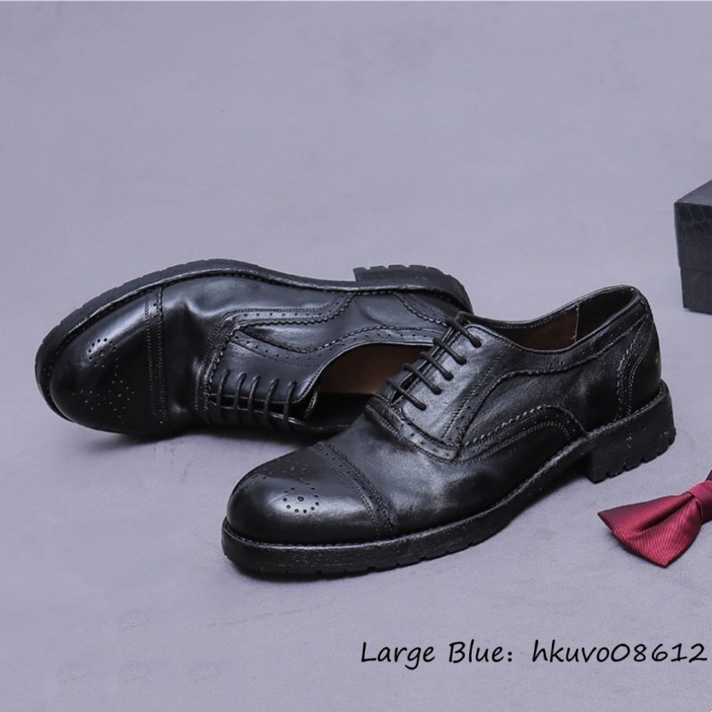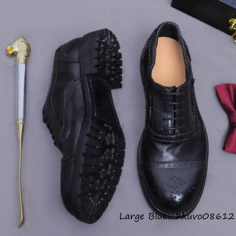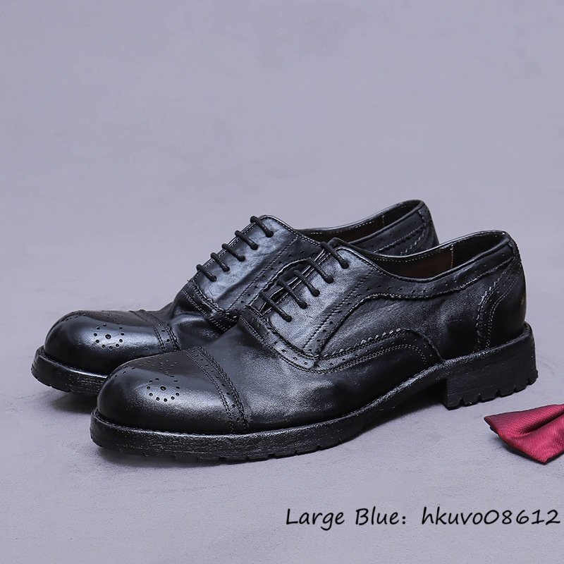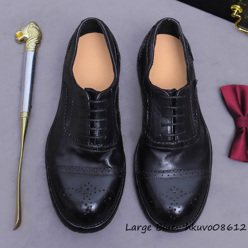 超希少★定価13万 ビジネスシューズ メンズ ハンドメイド 革靴 本革 グッドイヤー レザーシューズ 牛革 オックスフォード ブラック 25.0cm