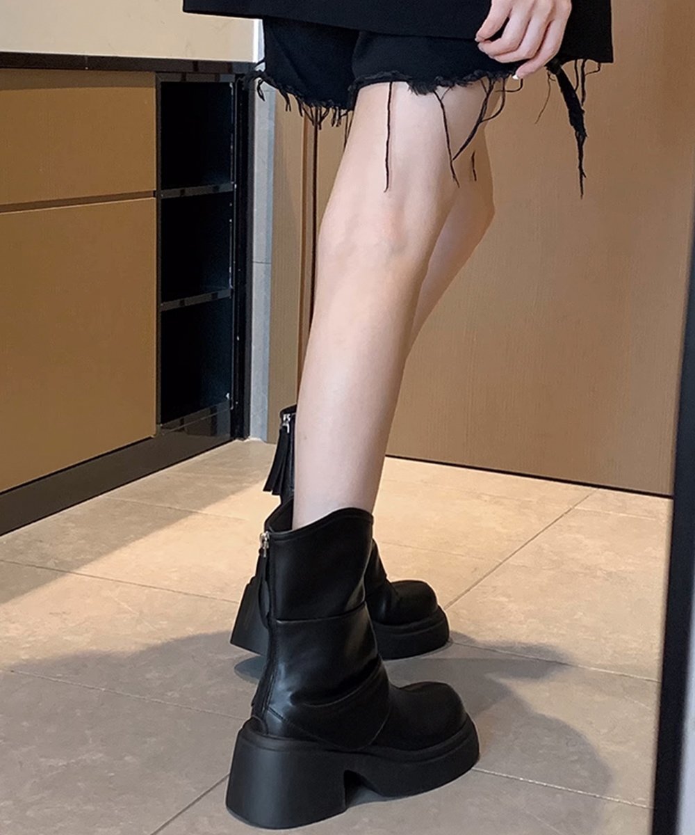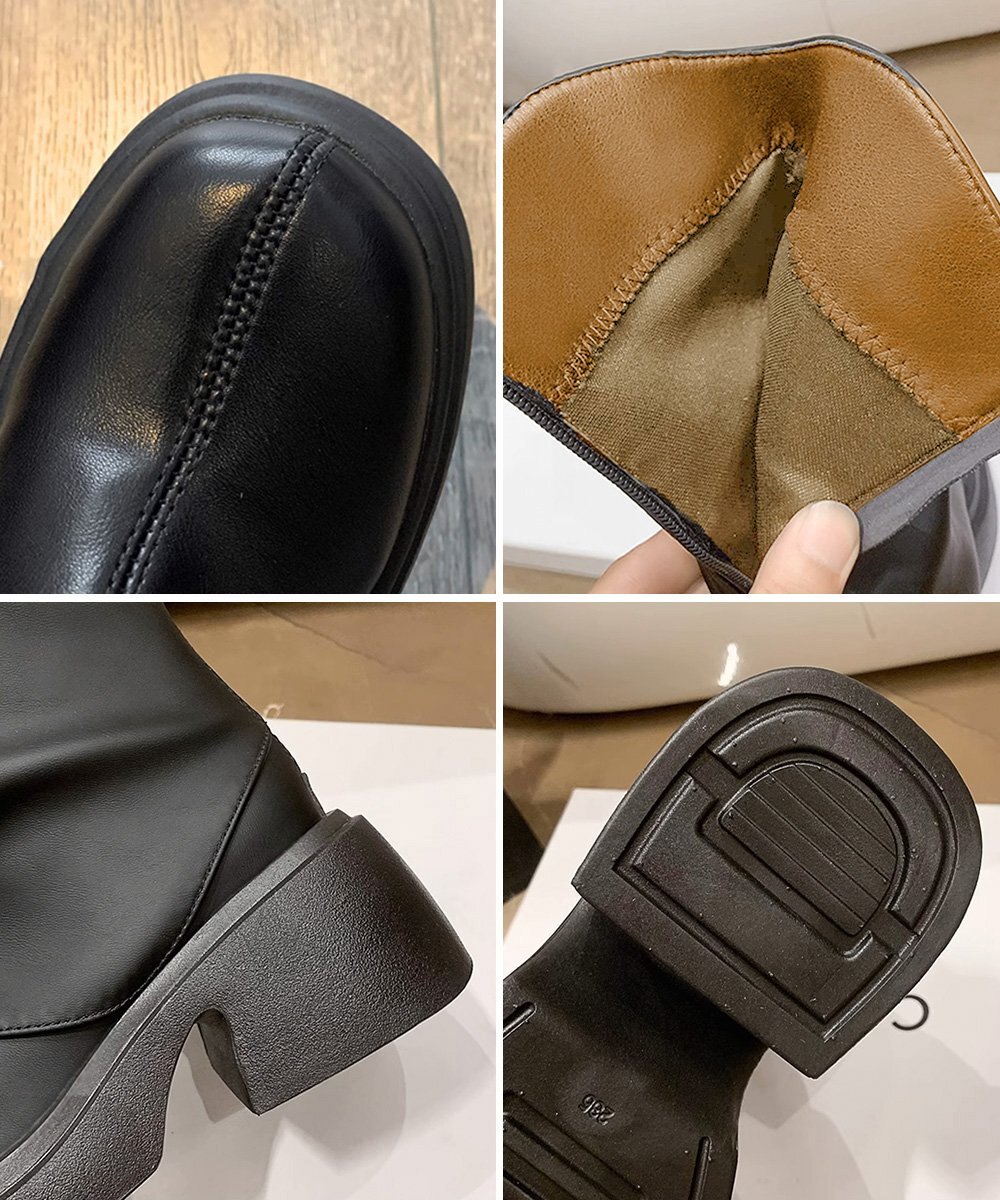 きれいめブーツ合皮 ストリートくつ人気 チャンキーヒール靴