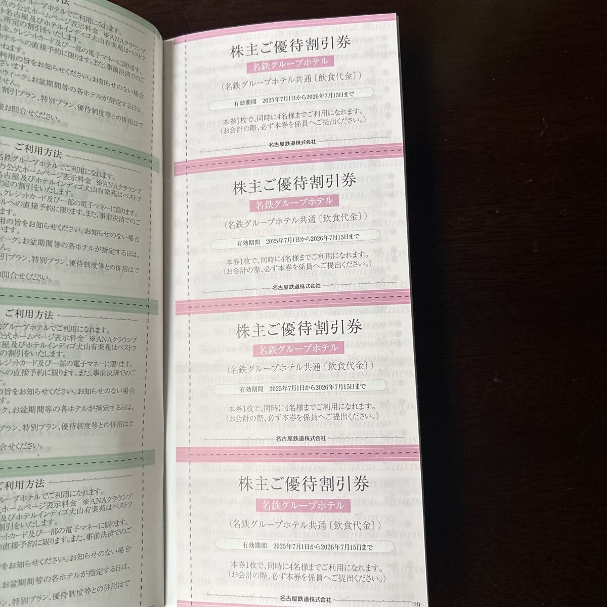 優待内容は写真または名古屋鉄道ホームページをご確認ください。なお乗車証はありません。