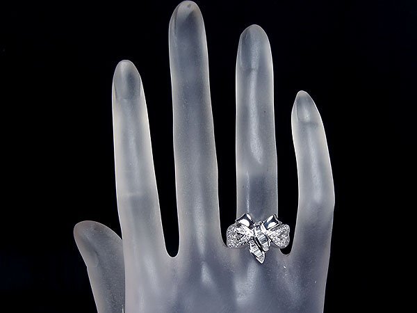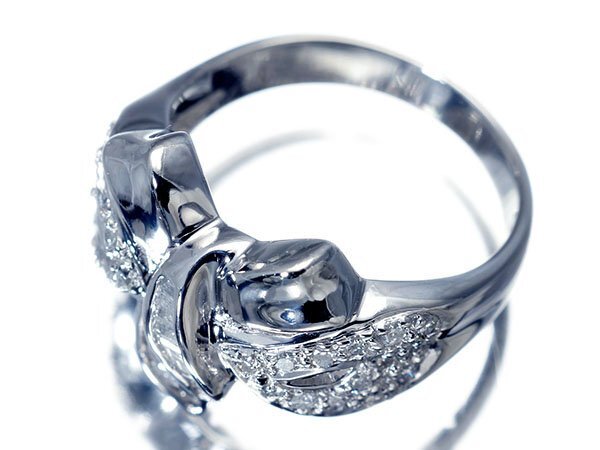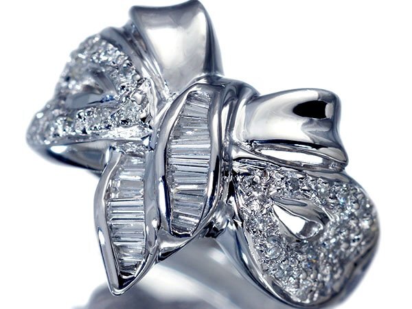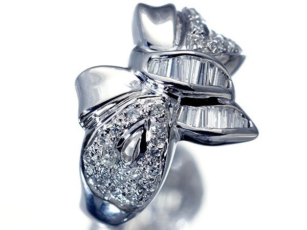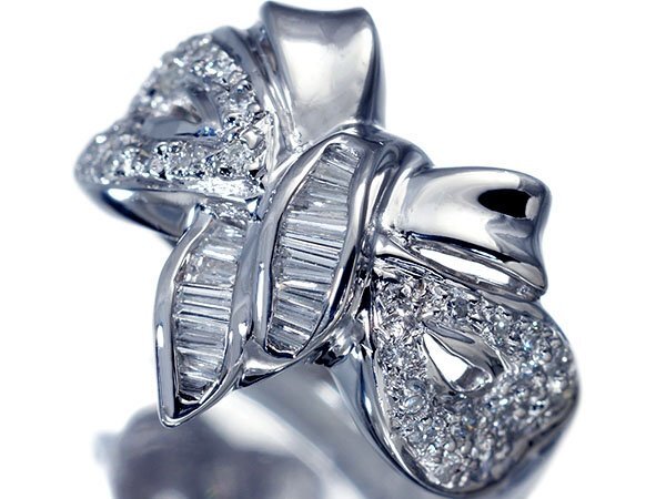 CUTEなリボンデザインに良質天然ダイヤモンド総計0.53ctを素敵に宝飾した、高級Pt900リングを1円から特別大放出致します!