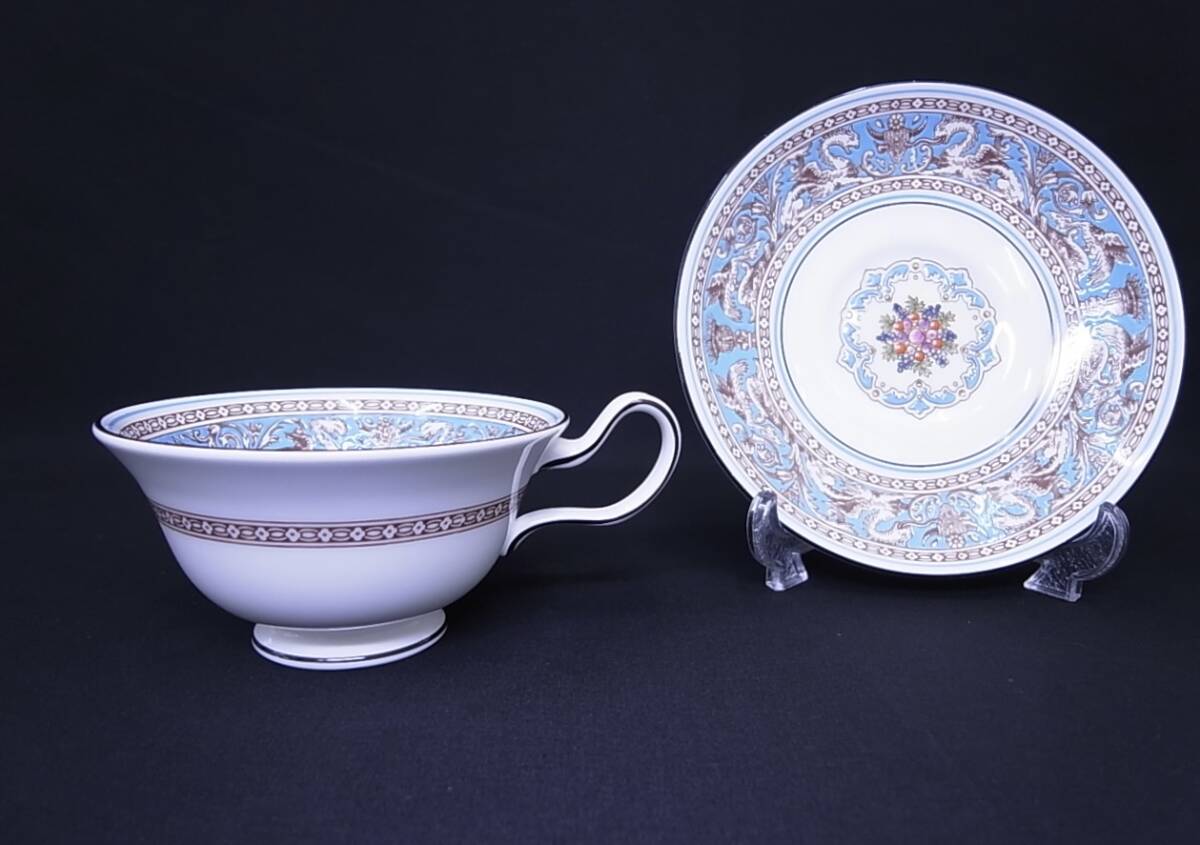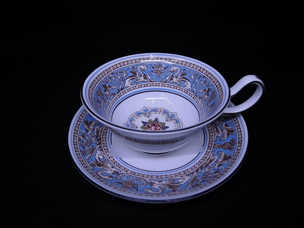 ★☆美品 WEDGWOOD ウェッジウッド フロレンティーン ターコイズ ティーカップ&ソーサー (ピオニー) MADE IN ENGLAND☆★