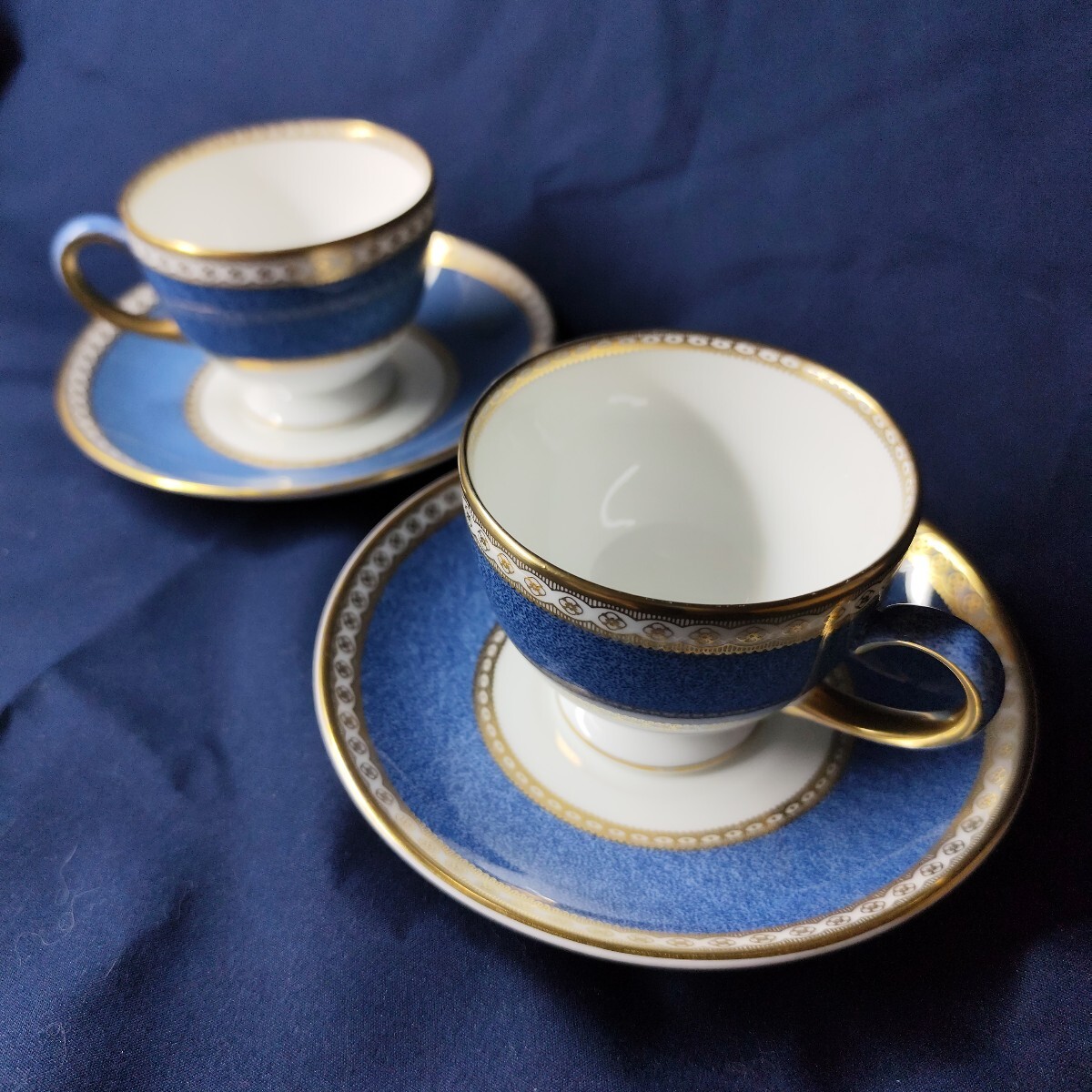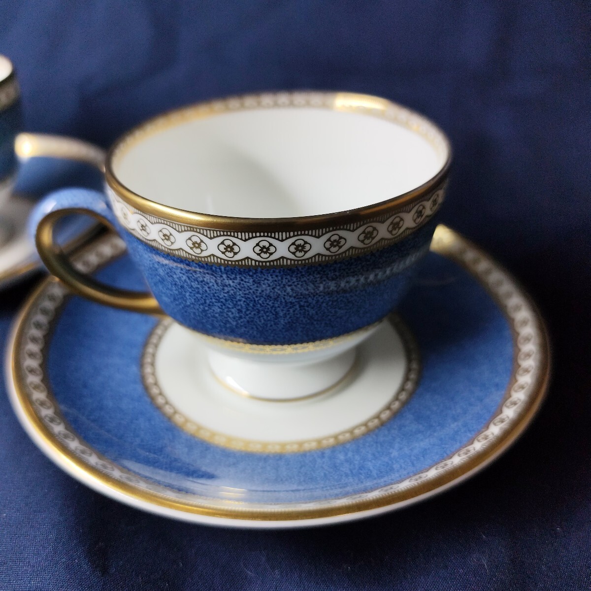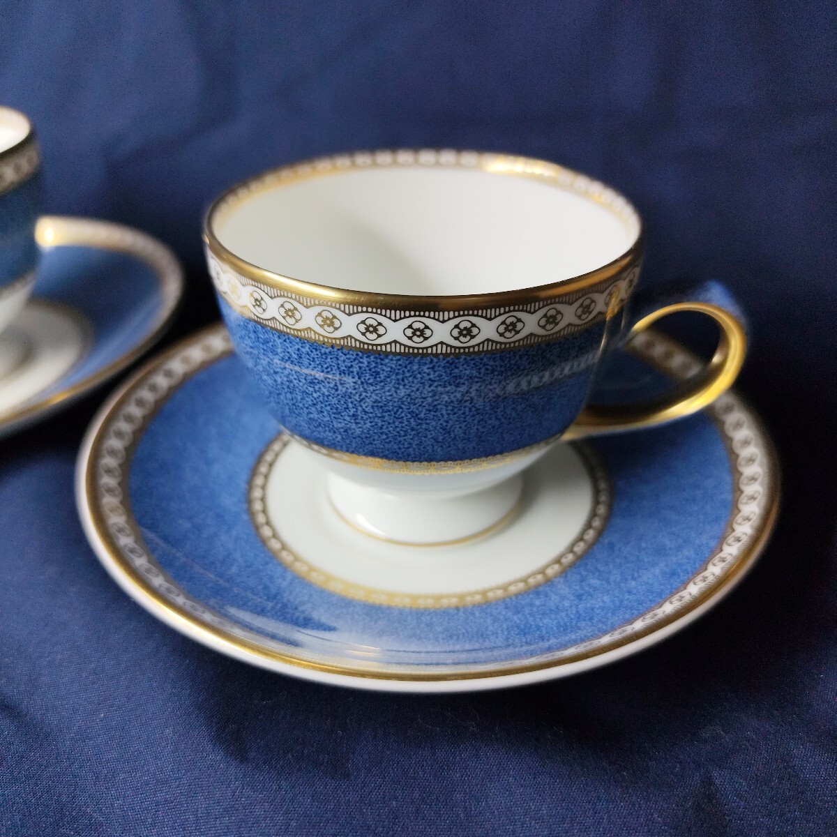 ウェッジウッド・ユーランダーパウダーブルーのカップ(コーヒー・紅茶兼用のリーシェイプ)&ソーサー2客セットです。