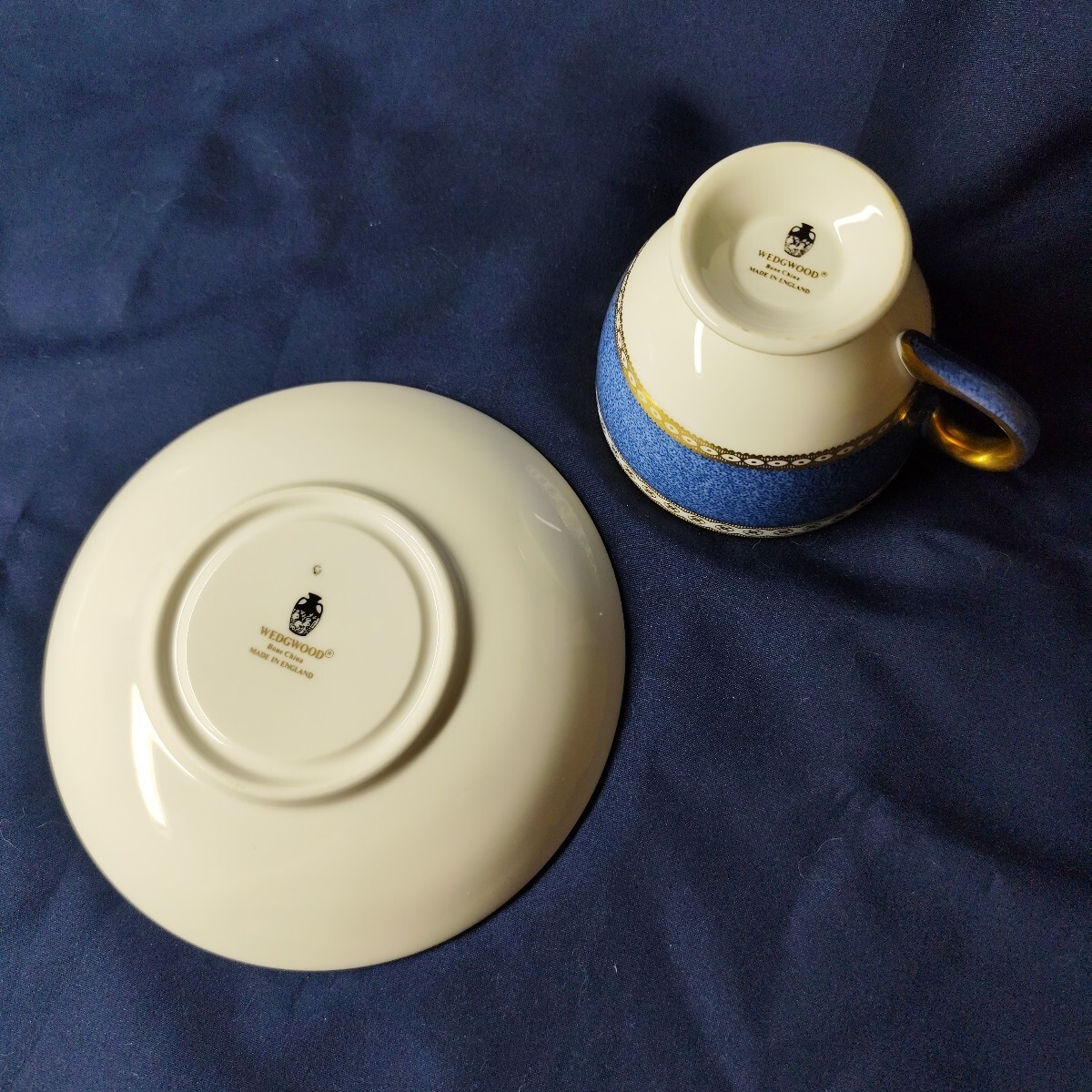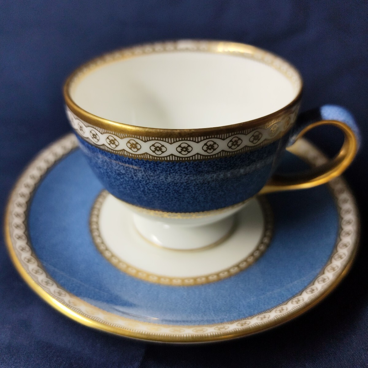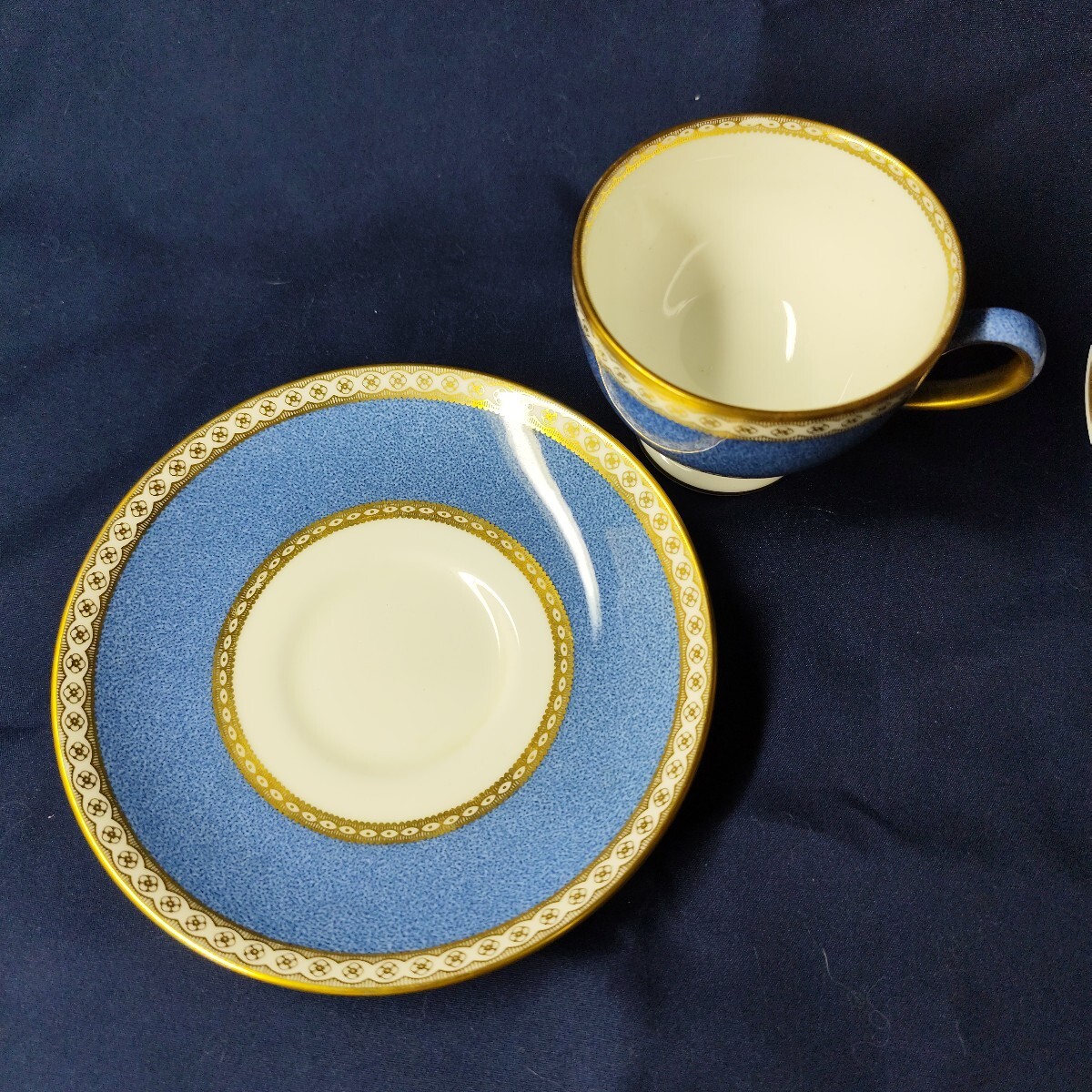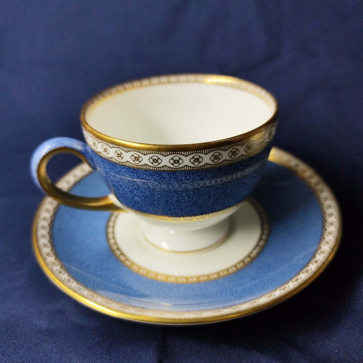 ウェッジウッド・ユーランダーパウダーブルーのカップ(コーヒー・紅茶兼用のリーシェイプ)&ソーサー2客セットです。