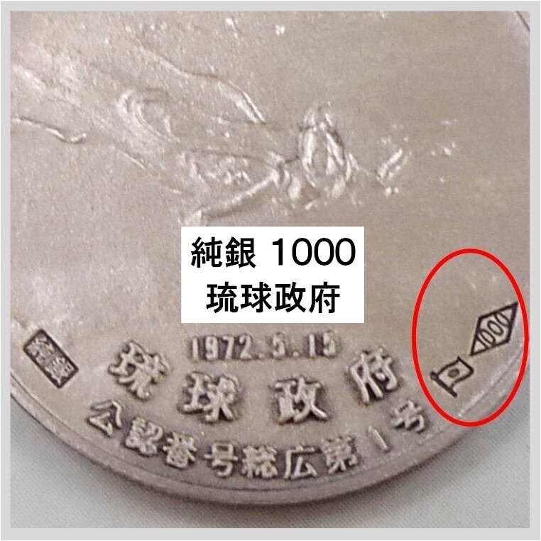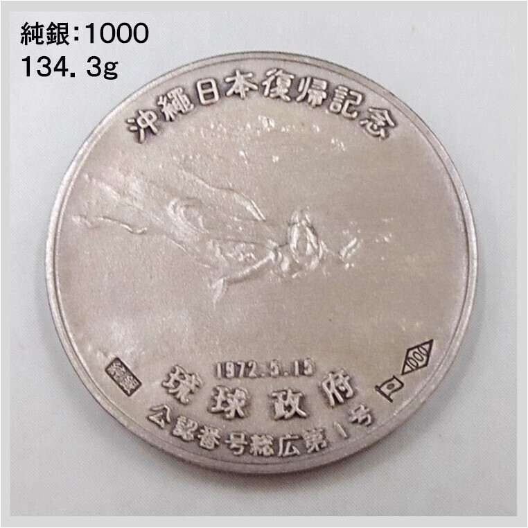 ◆製品名:沖縄 日本復帰 記念メダル 1972.5.15 純銀 20.3g シルバー/1000 琉球政府 極印 三井金属