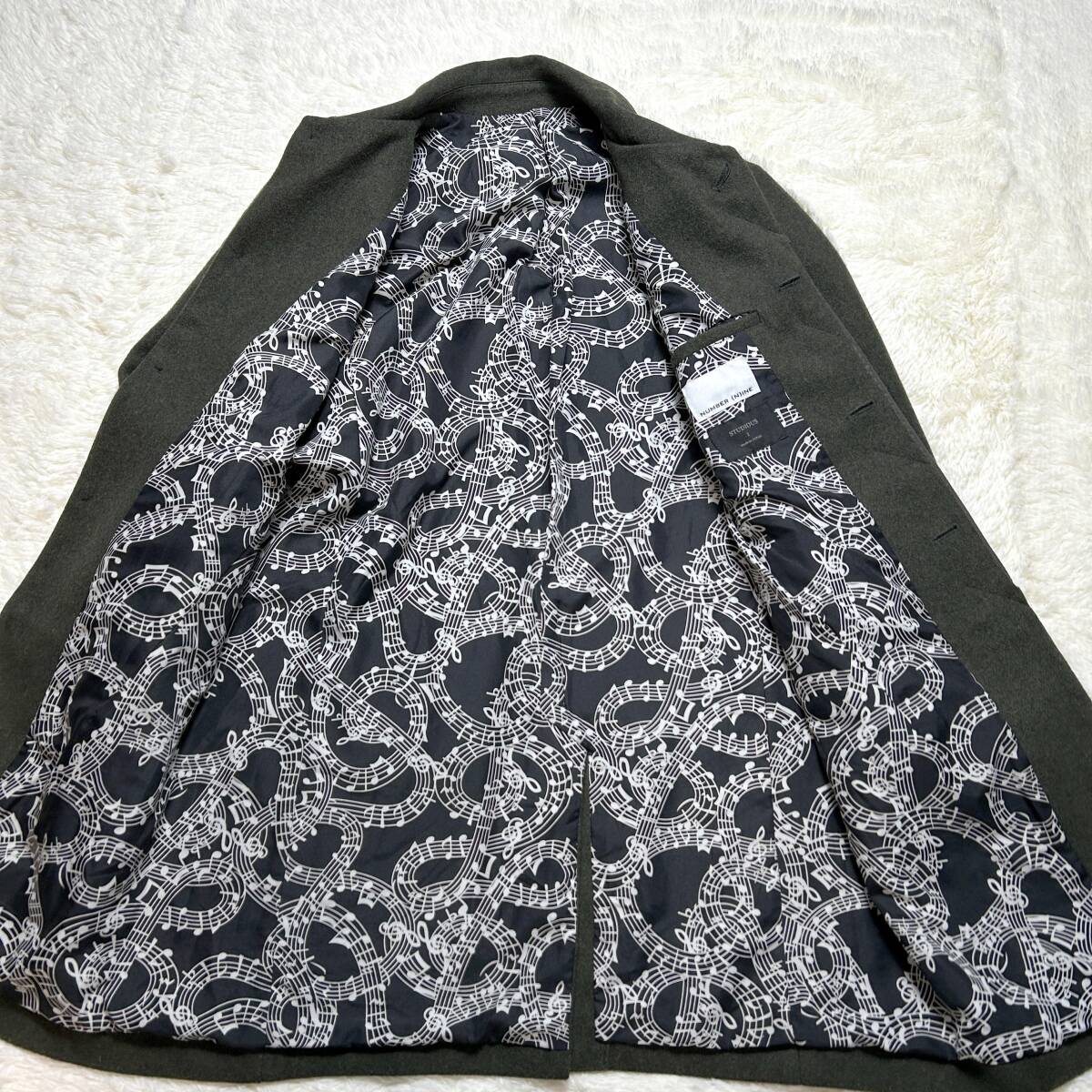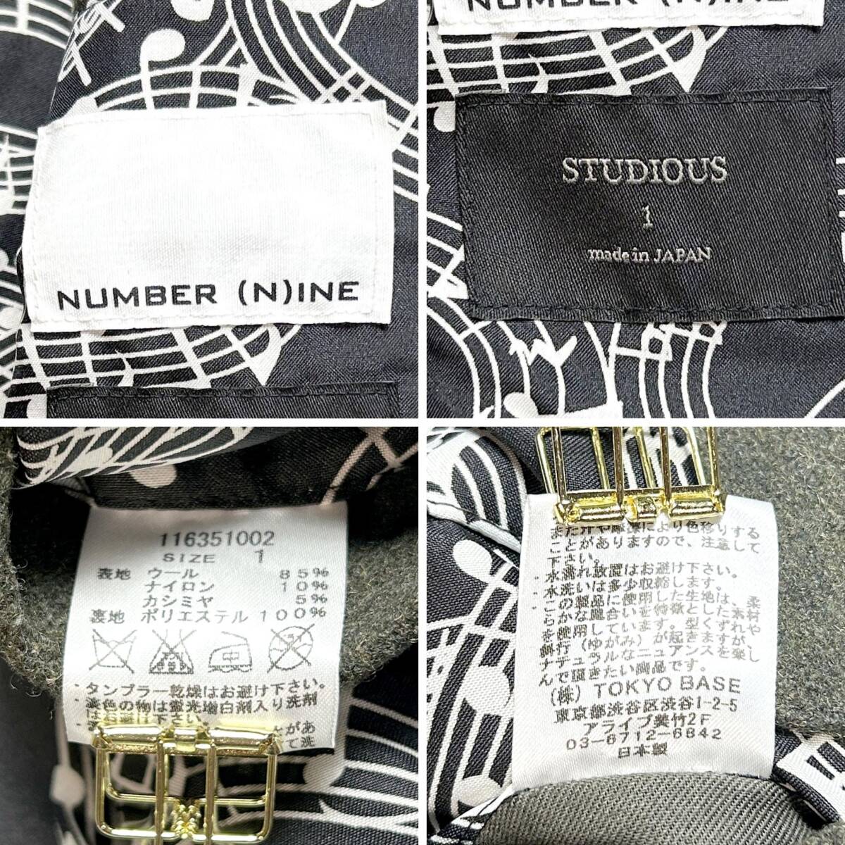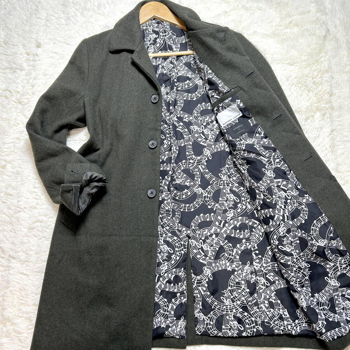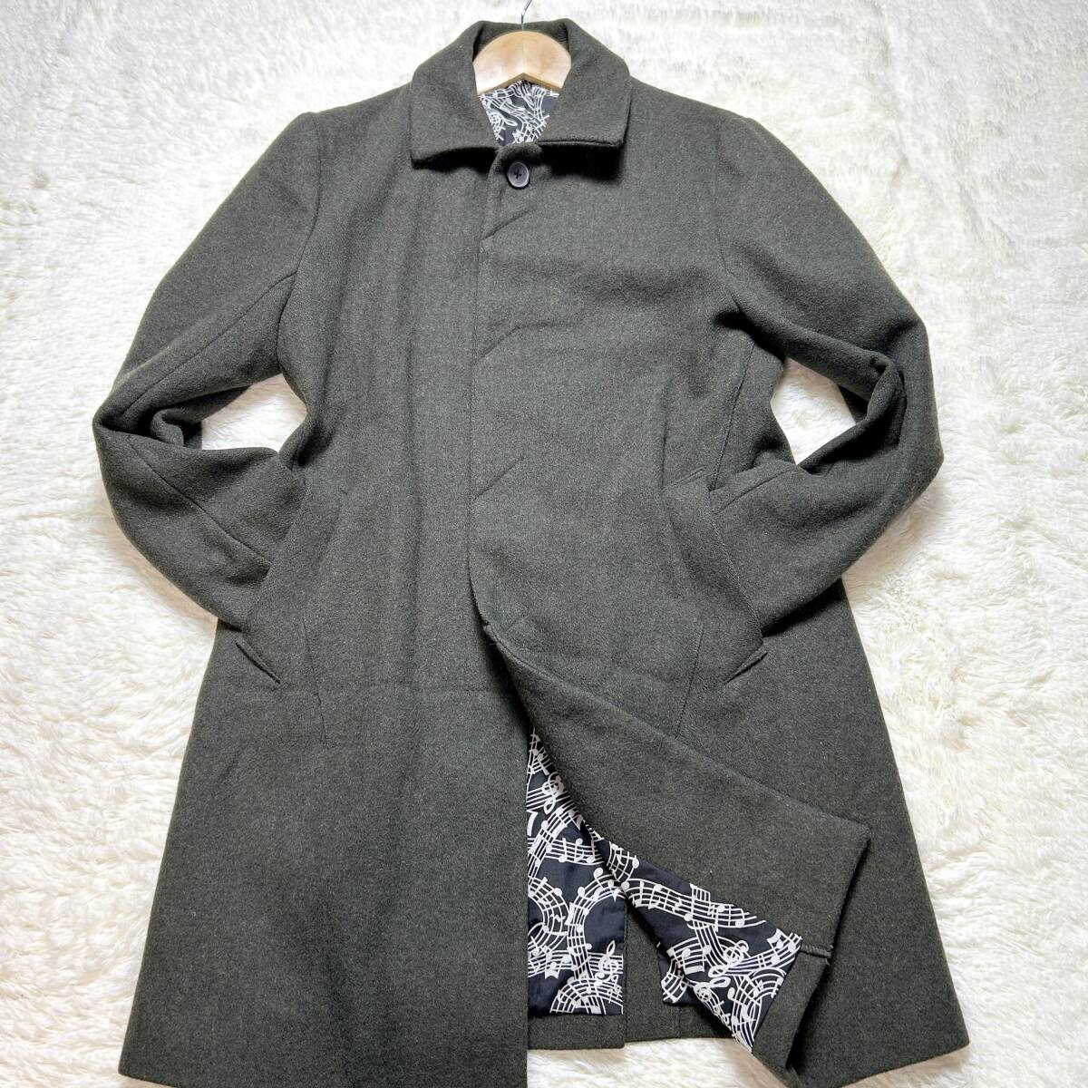 美品/カシミヤ混/音符柄 コラボ ナンバーナイン ステュディオス ステンカラーコート 比翼 メンズ カーキ ウール ナイロン Sサイズ相当