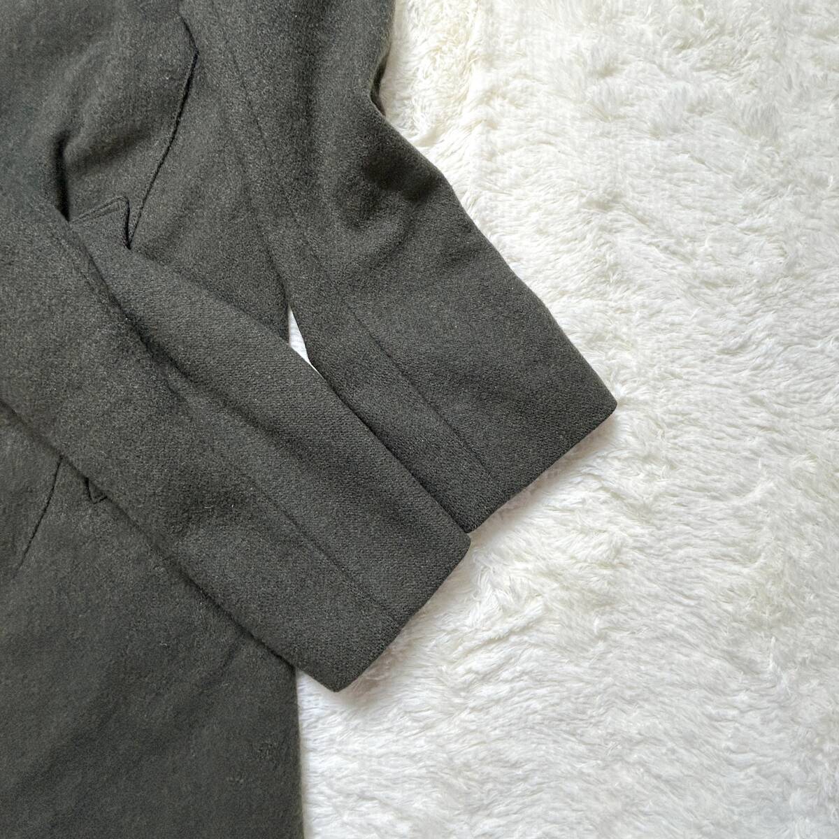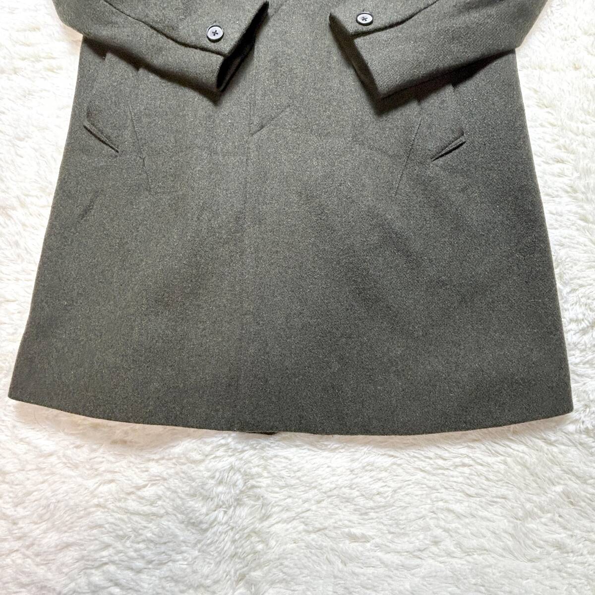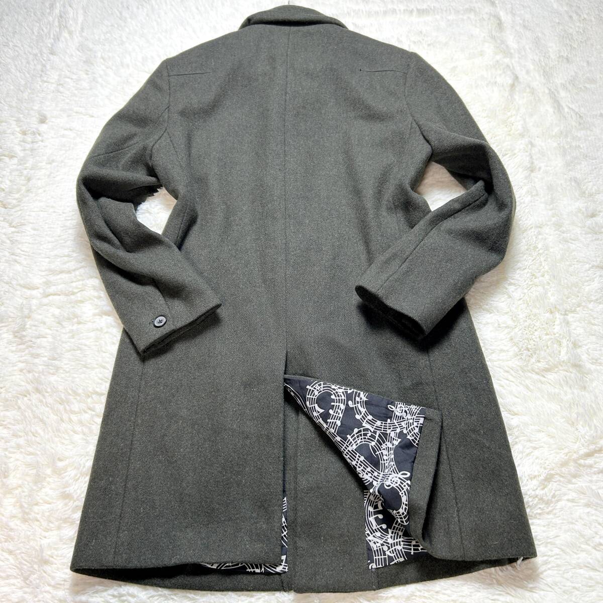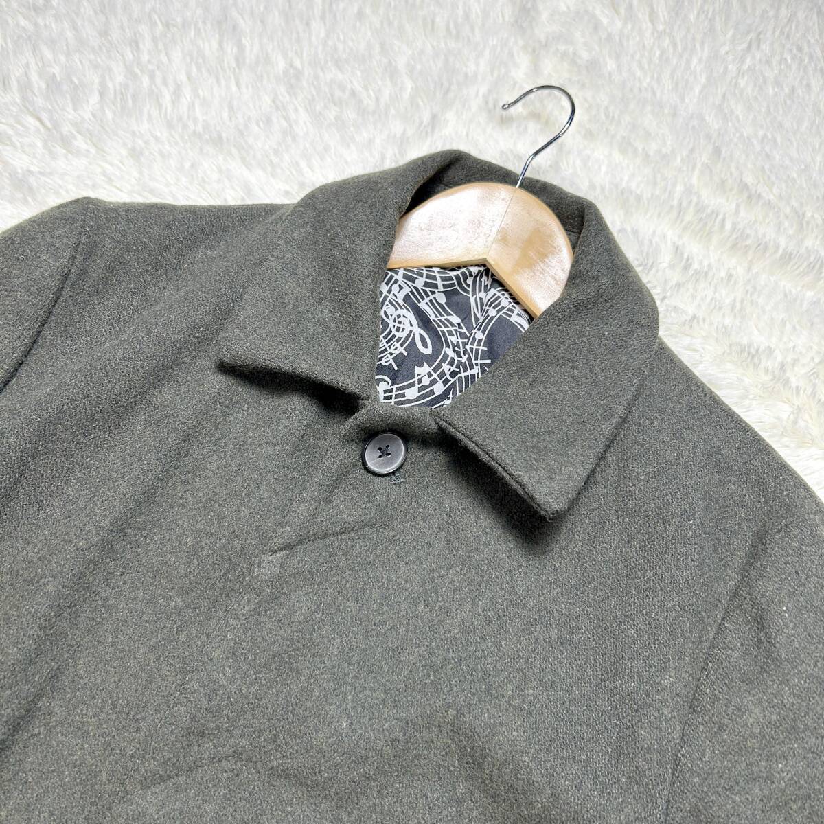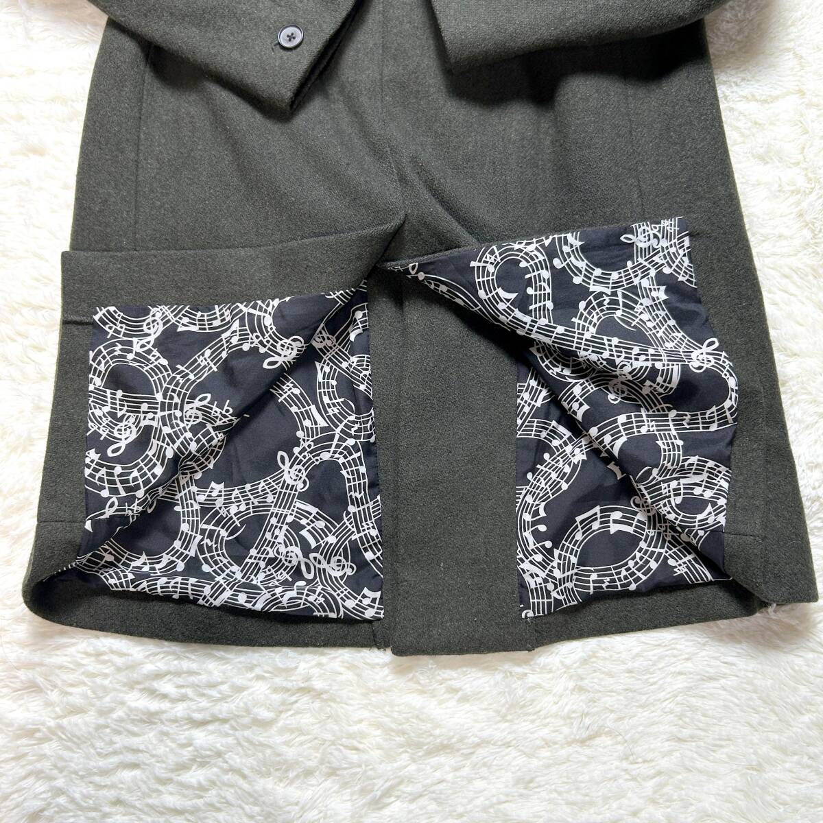 美品/カシミヤ混/音符柄 コラボ ナンバーナイン ステュディオス ステンカラーコート 比翼 メンズ カーキ ウール ナイロン Sサイズ相当