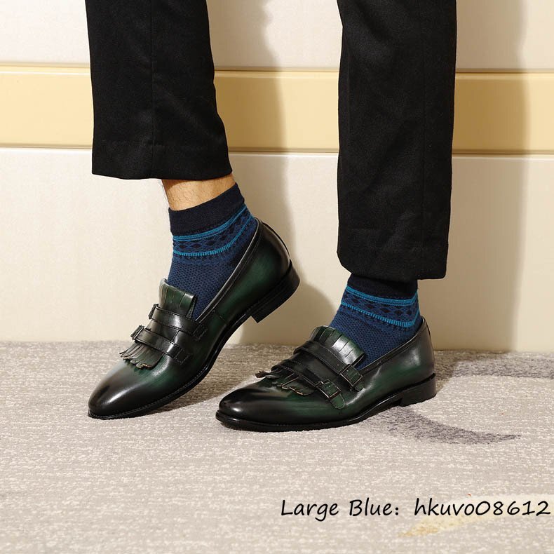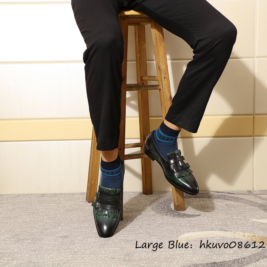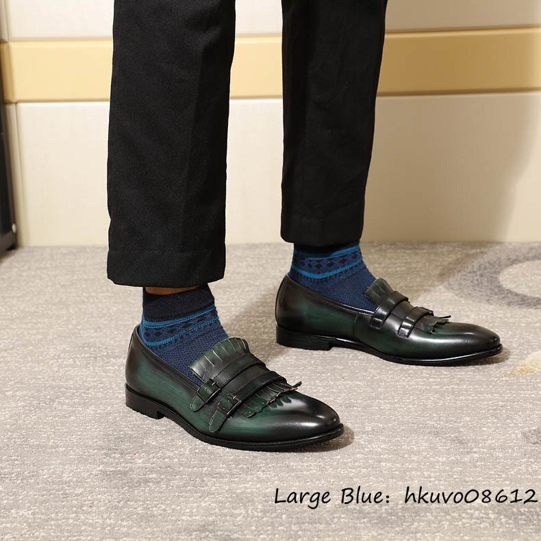定価8万◆最高級 牛革 ローファー スリッポン 本革 ビジネスシューズ メンズ 職人手作り タッセル 紳士靴 レザーシューズ グリーン 24.5cm