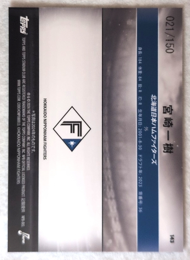 ★150枚限定★ 宮崎 一樹 北海道日本ハムファイターズ 21/150 TOPPS STADIUM CLUB 2024