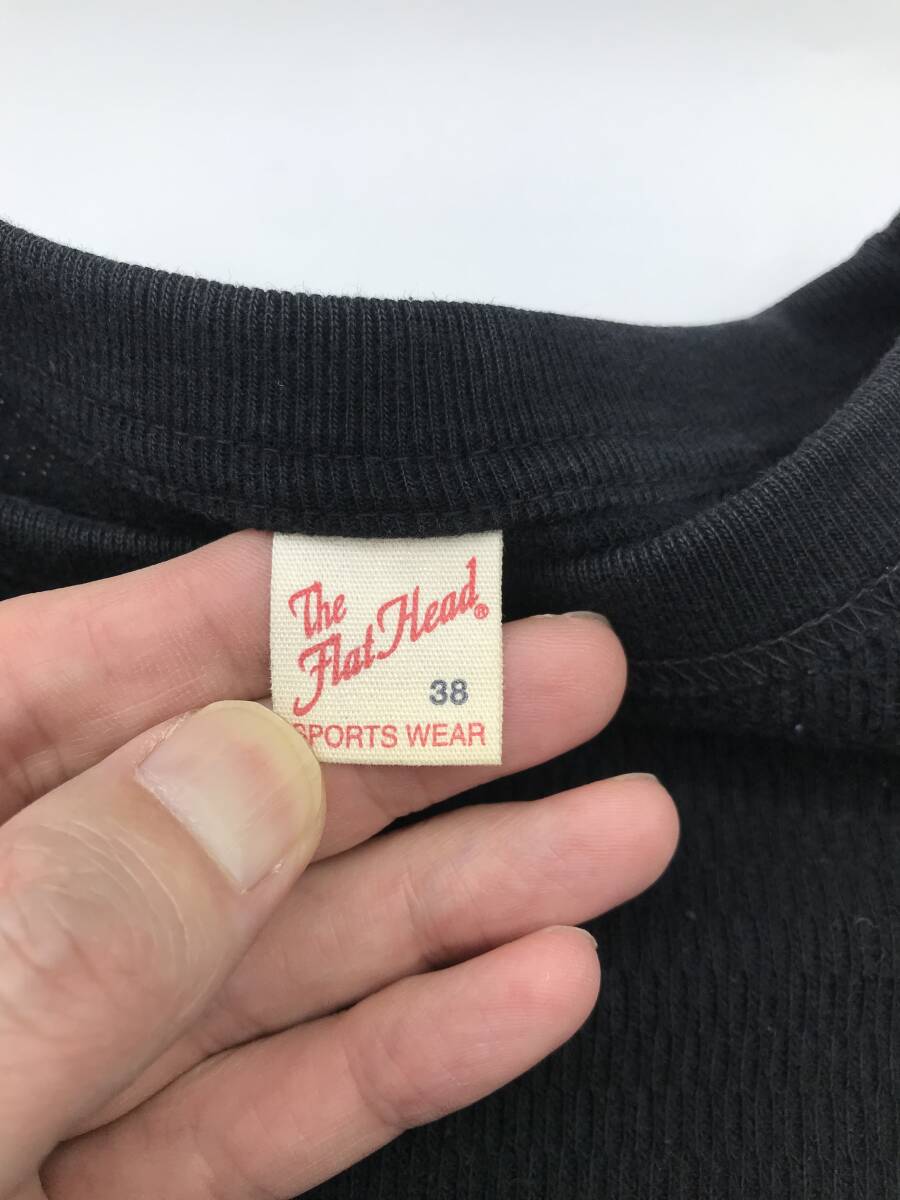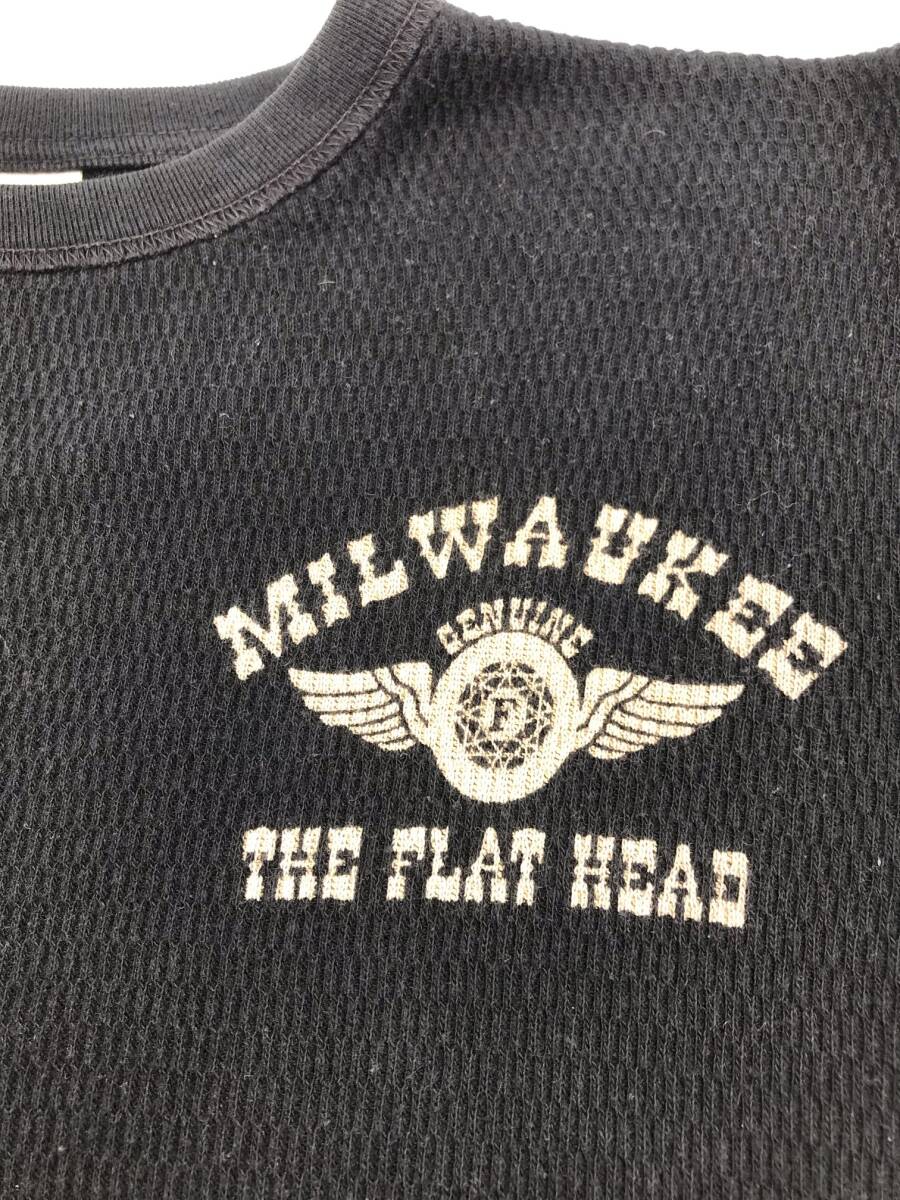 【日本製】FLAT HEAD 長袖フラットヘッド サーマル ロングTeeシャツ/黒/38/ メッシュ リアルマッコイ バズリクソンズ ウエアハウス