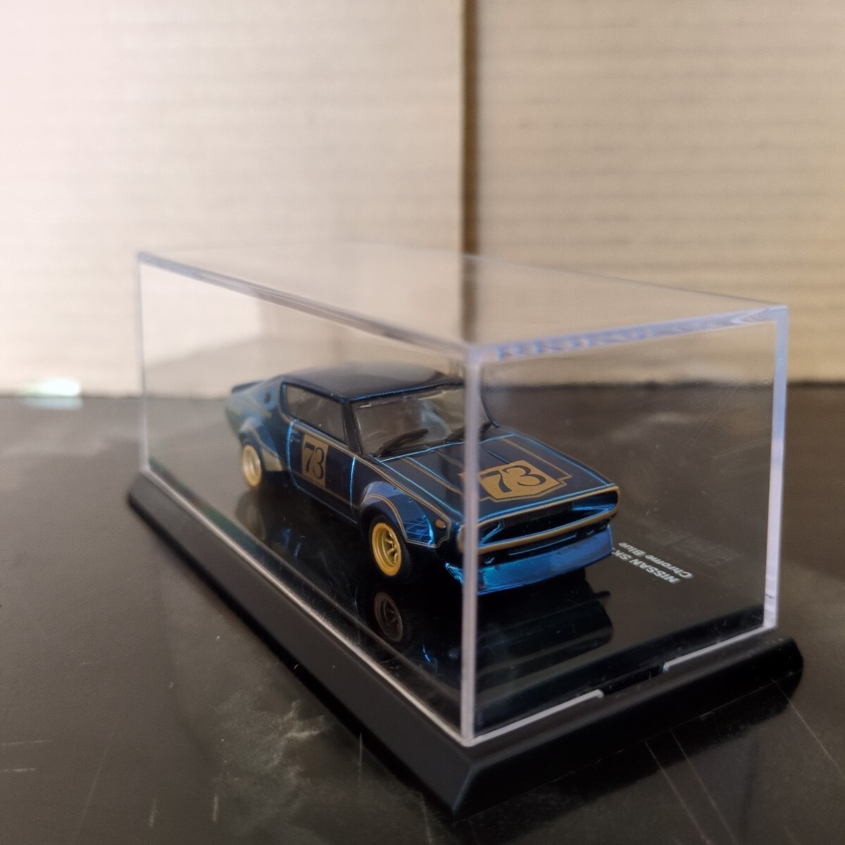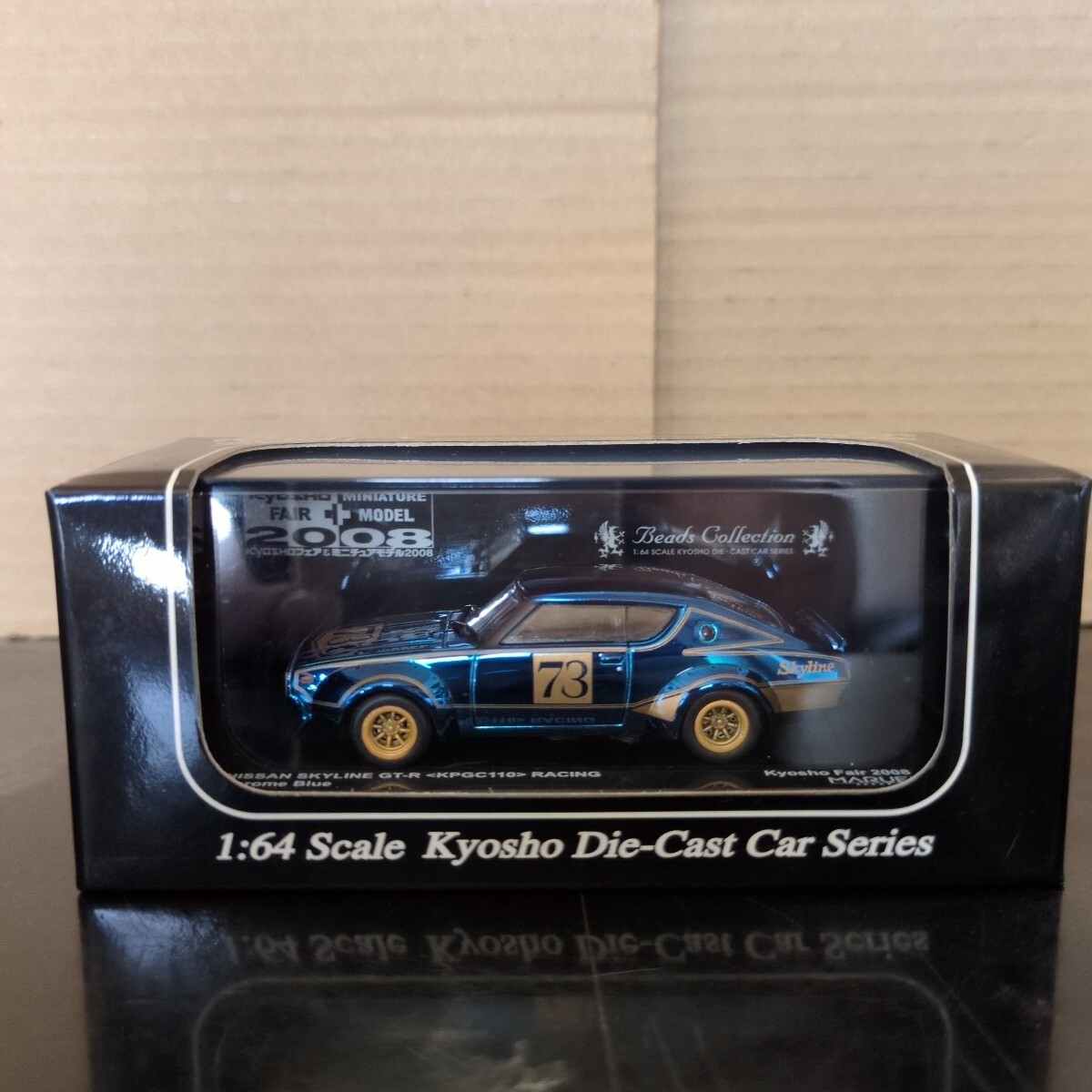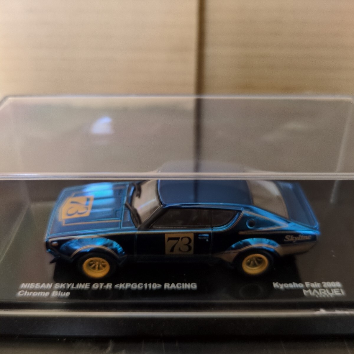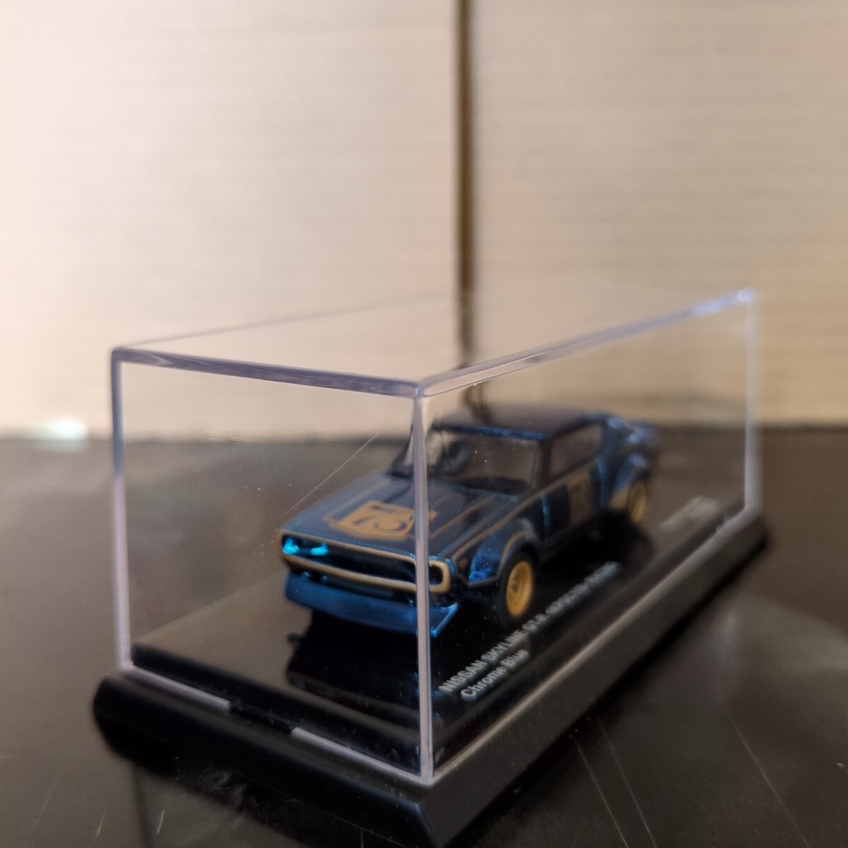 京商のビーズコレクションのニッサンスカイラインGT−RレーシングのkyoshoFAIRの会場限定?のメッキの青に成ります。いわゆる幻のケンメリGT−Rのレーシングの青メッキに成ります。