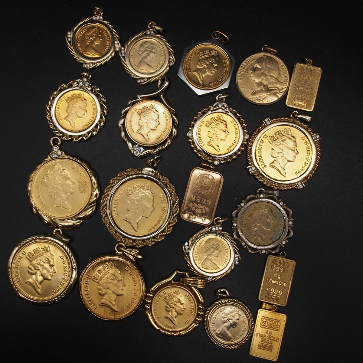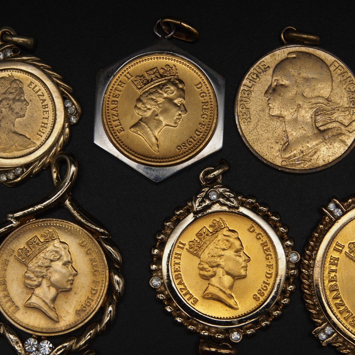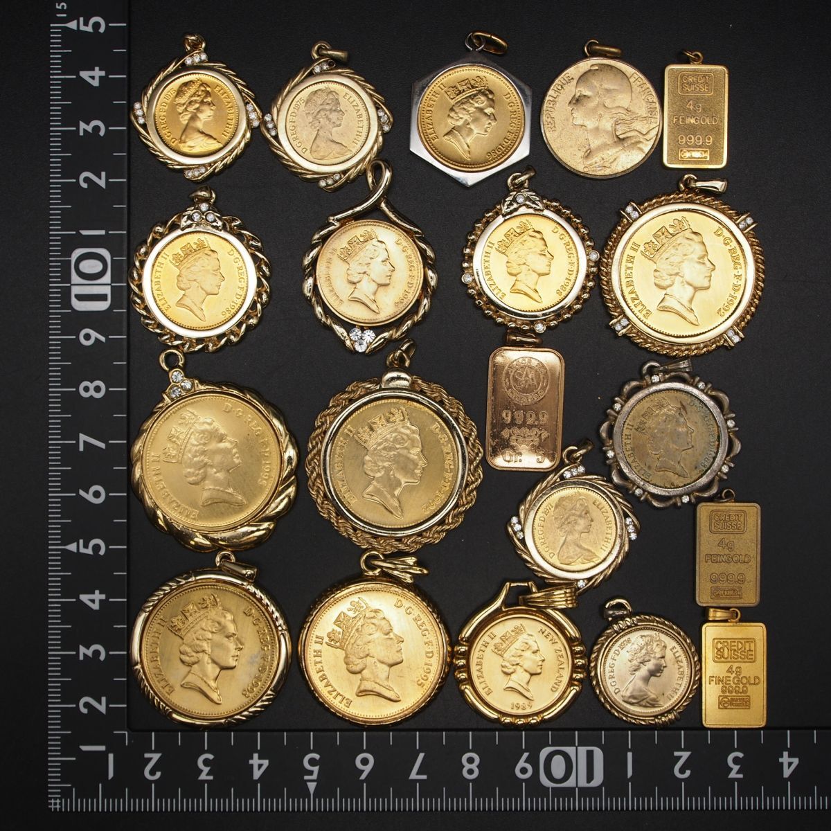 (CMP0906) 1円 コイントップ アクセサリー 大量セット メダル エリザベス デザイン ゴールドカラー ペンダント チャーム ヘッド まとめて