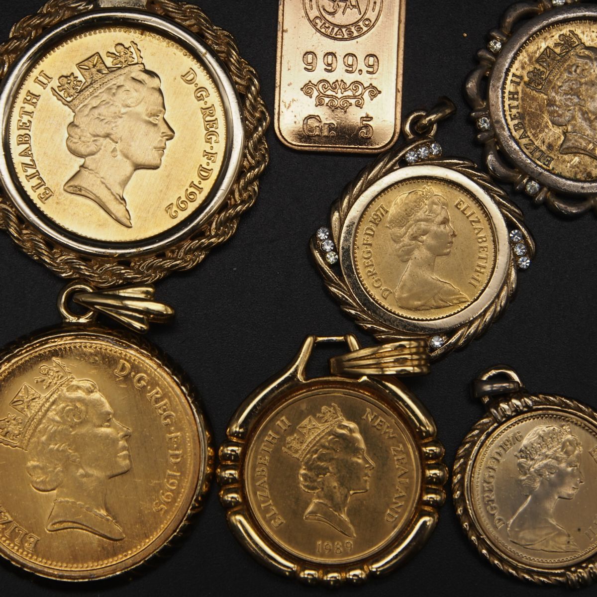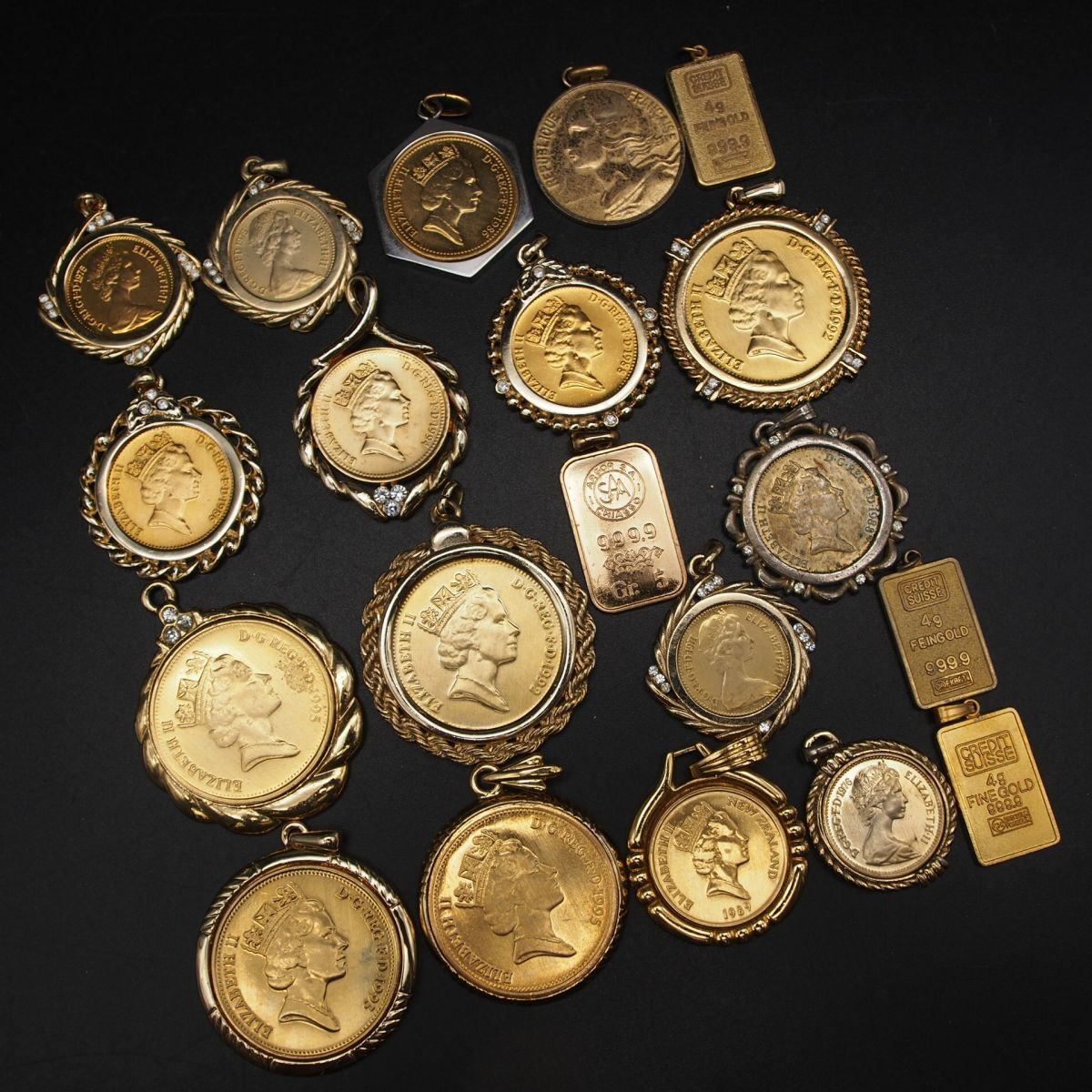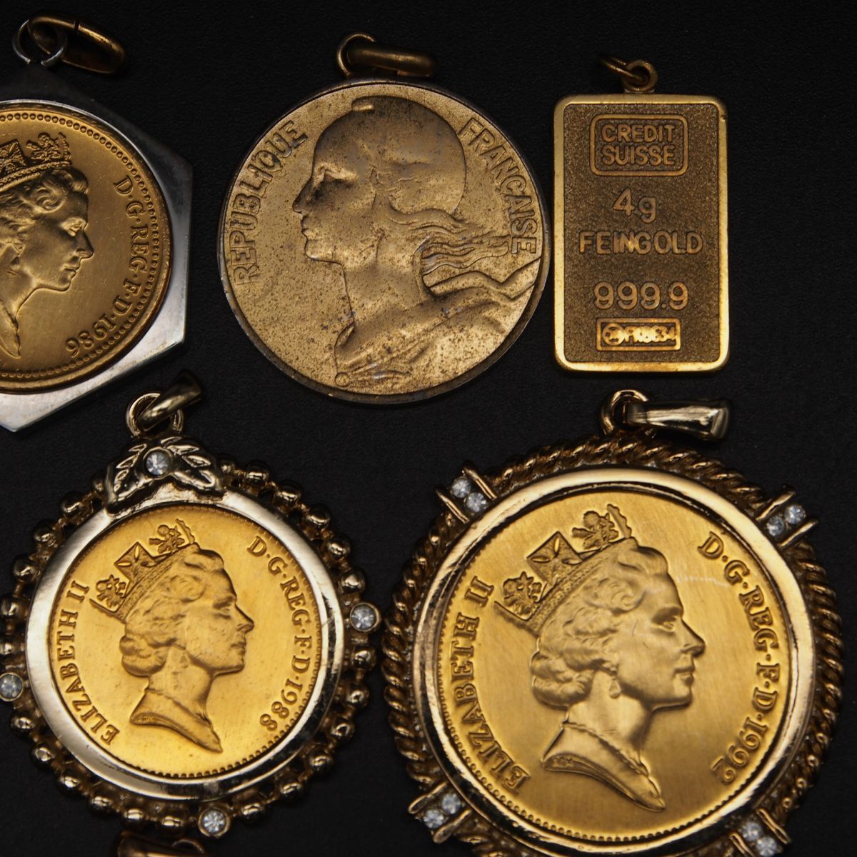 (CMP0906) 1円 コイントップ アクセサリー 大量セット メダル エリザベス デザイン ゴールドカラー ペンダント チャーム ヘッド まとめて