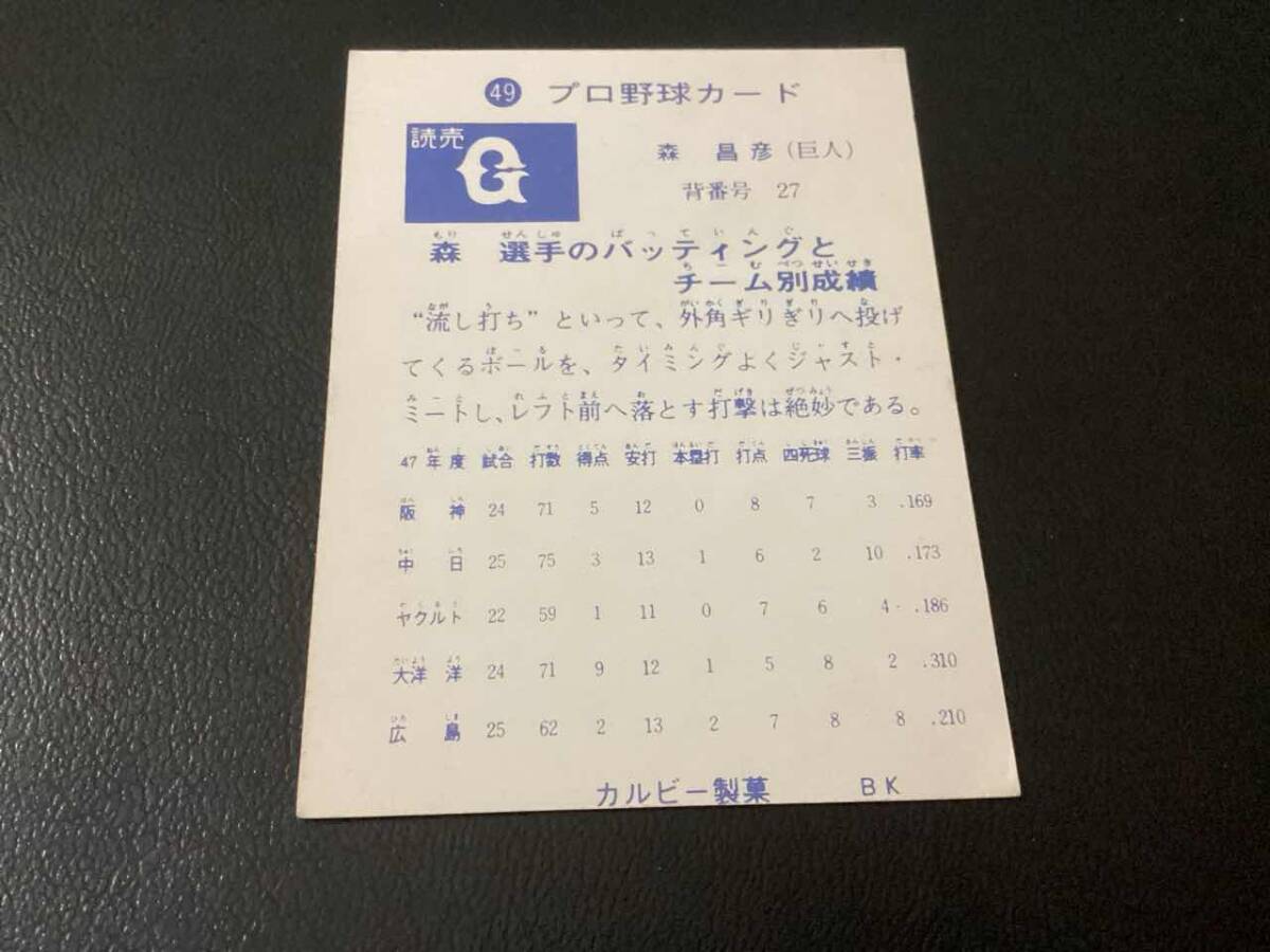 良品 カルビー73年 旗版 森(巨人)No.49 プロ野球カード