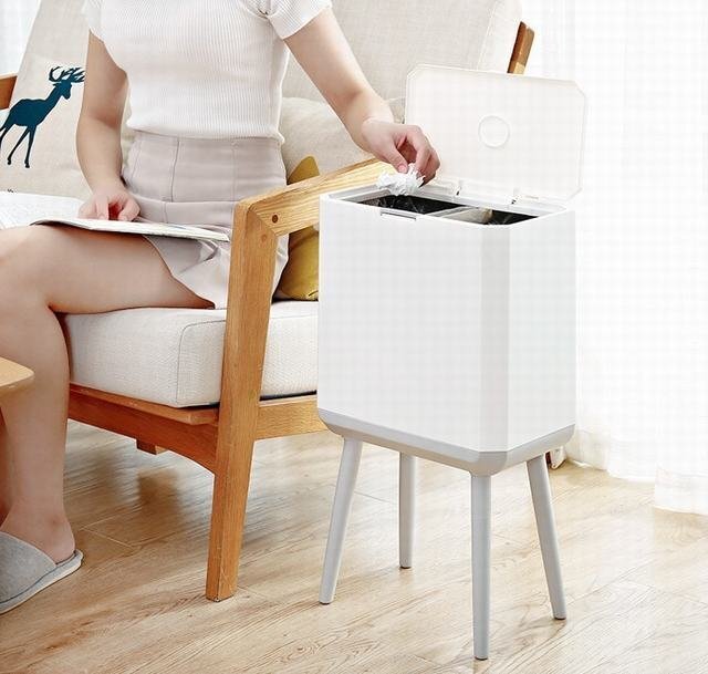 スリムな長方形のごみ箱、狭いところにもちょうどいいサイズです。