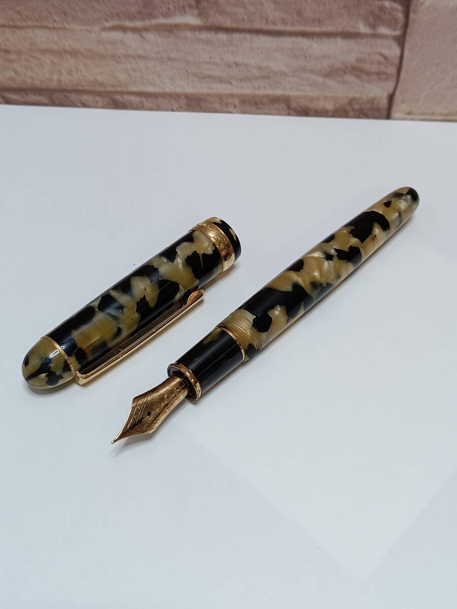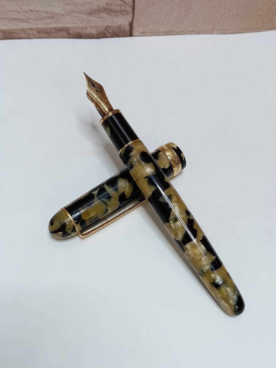 PLATINUM プラチナ 万年筆 セルロイド 石垣柄 #3776 ペン先 18K 中 刻印 筆記用具 文房具
