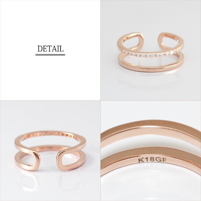 12号 / 新品 指輪 K18GP ダブルライン リング レディース メタル 2連 細い 重ね着け 18金 18kコーティング ピンクゴールド ダイヤ CZ 女性