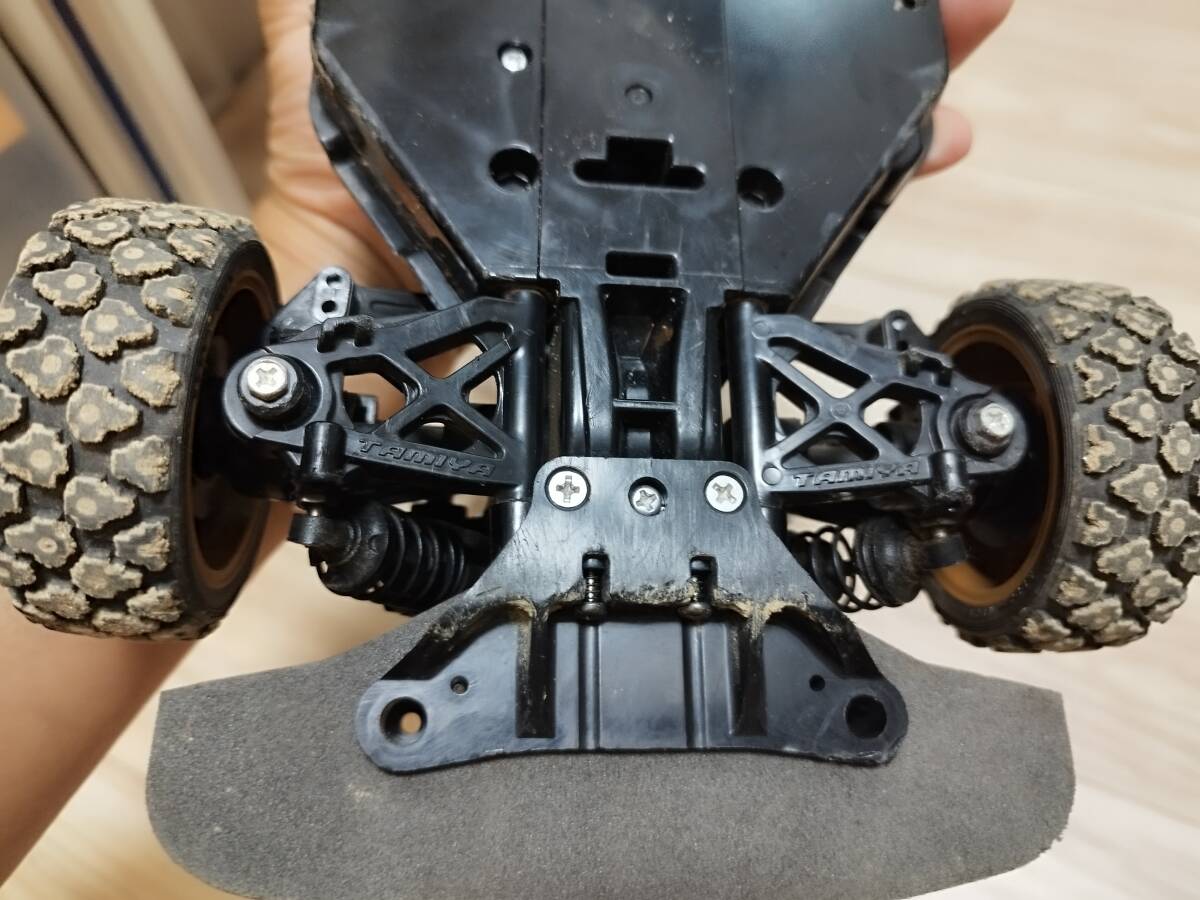 タミヤの製品はあまり分からないので写真で判断して下さい。オフロードコースで30回ほど走行しました。先々週まで走行していましたが、ギア鳴りがします。ジャンク扱いで出品しましたのでノーリターン、ノーリターンでお願いします。