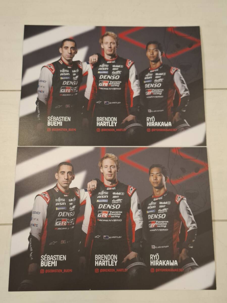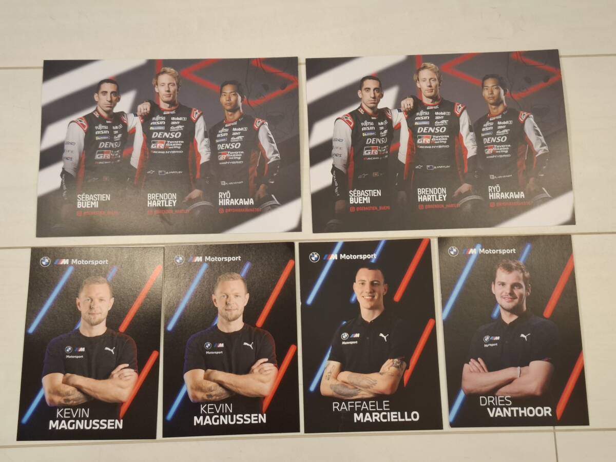 大混雑のピットウォークにて、フォトセッション終了後に手に入れました。なので、いずれもサインはありません。ブエミ・ハートレー・平川の8号車はもちろん、BMW Mの3名、特にマグヌッセンの人気が凄かったです。