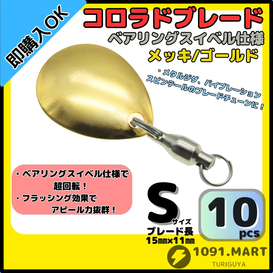 【送料無料】コロラドブレード メッキ/ゴールド Sサイズ 10個セット ボールベアリングスイベル付き スピンテールブレード ブレードチューン
