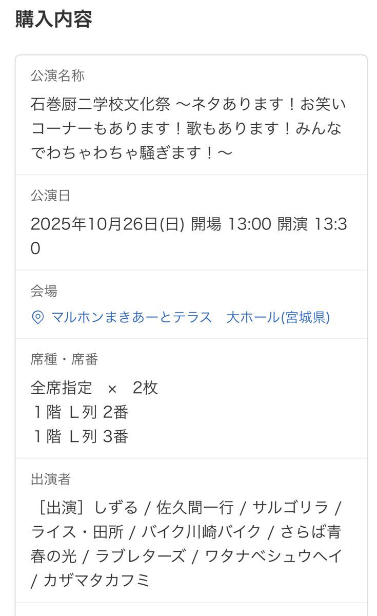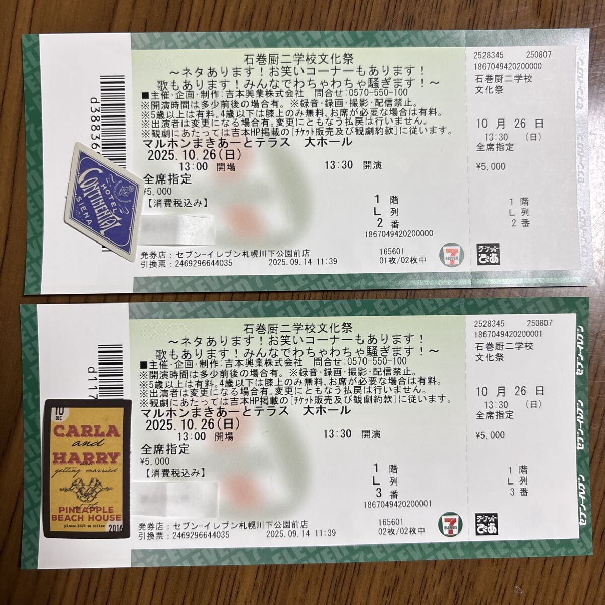 チケットのバーコード部分は見えない様に加工させて頂きました