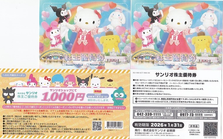 サンリオピューロランド、ハーモニーランド無料入場券3枚