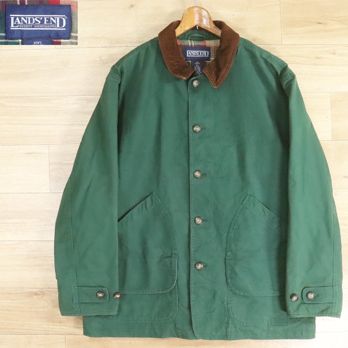 M10T/Y8.6-5 アメリカ古着 LANDS' END ランズエンド ハンティングジャケット コットン カバーオール 襟コーデュロイ メンズ L