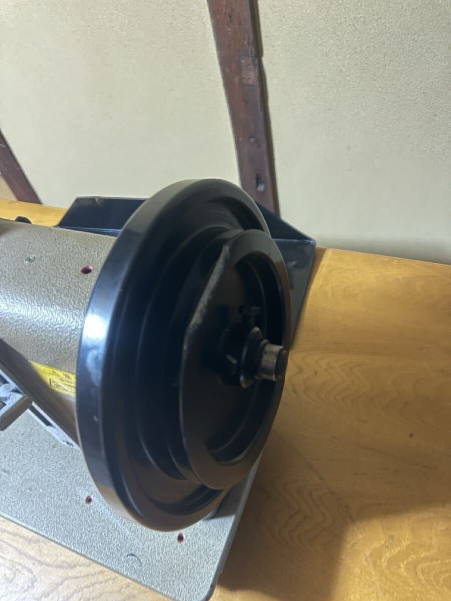 動作はしていたのですが、輸送中に破損してしまいました。電源を入れると回転はしますが、すぐにベルトが外れてしまいます。手で回します。ベルトが回転する円形の部品を交換する必要があります。