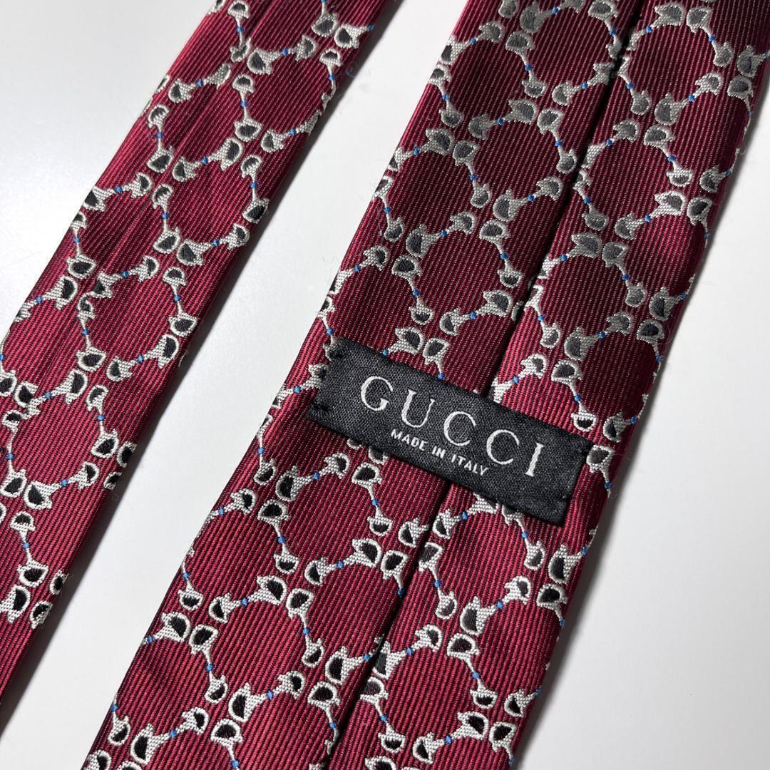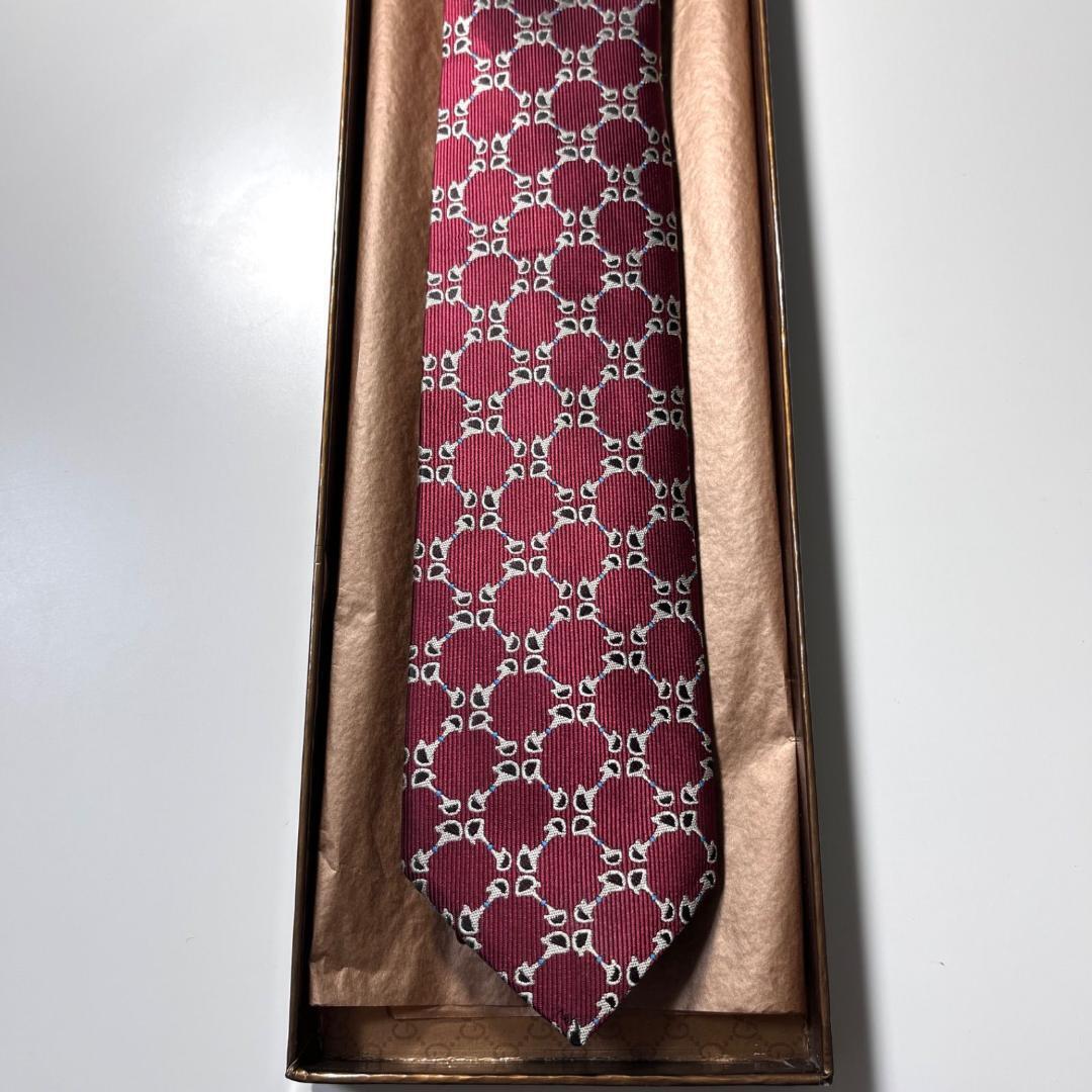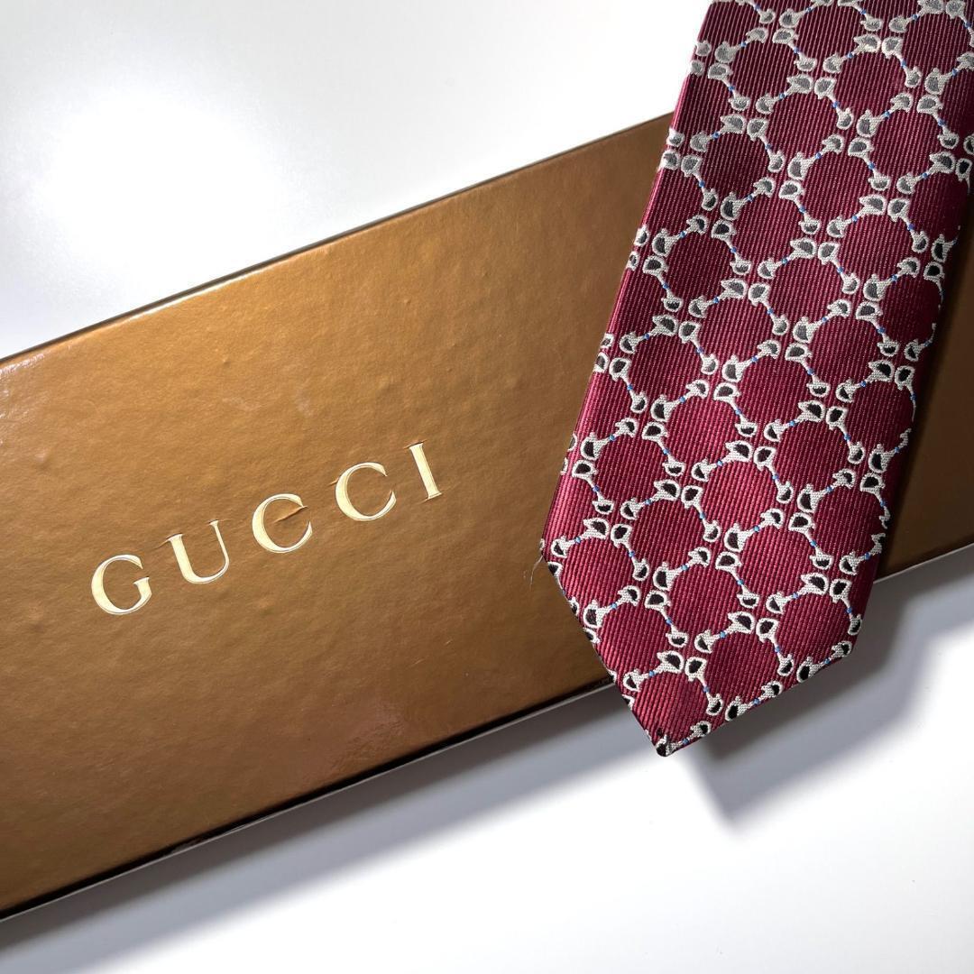 ★未使用級★ GUCCI グッチ ネクタイ シルク100% ワインレッド 総柄 【正規品/本物保証】