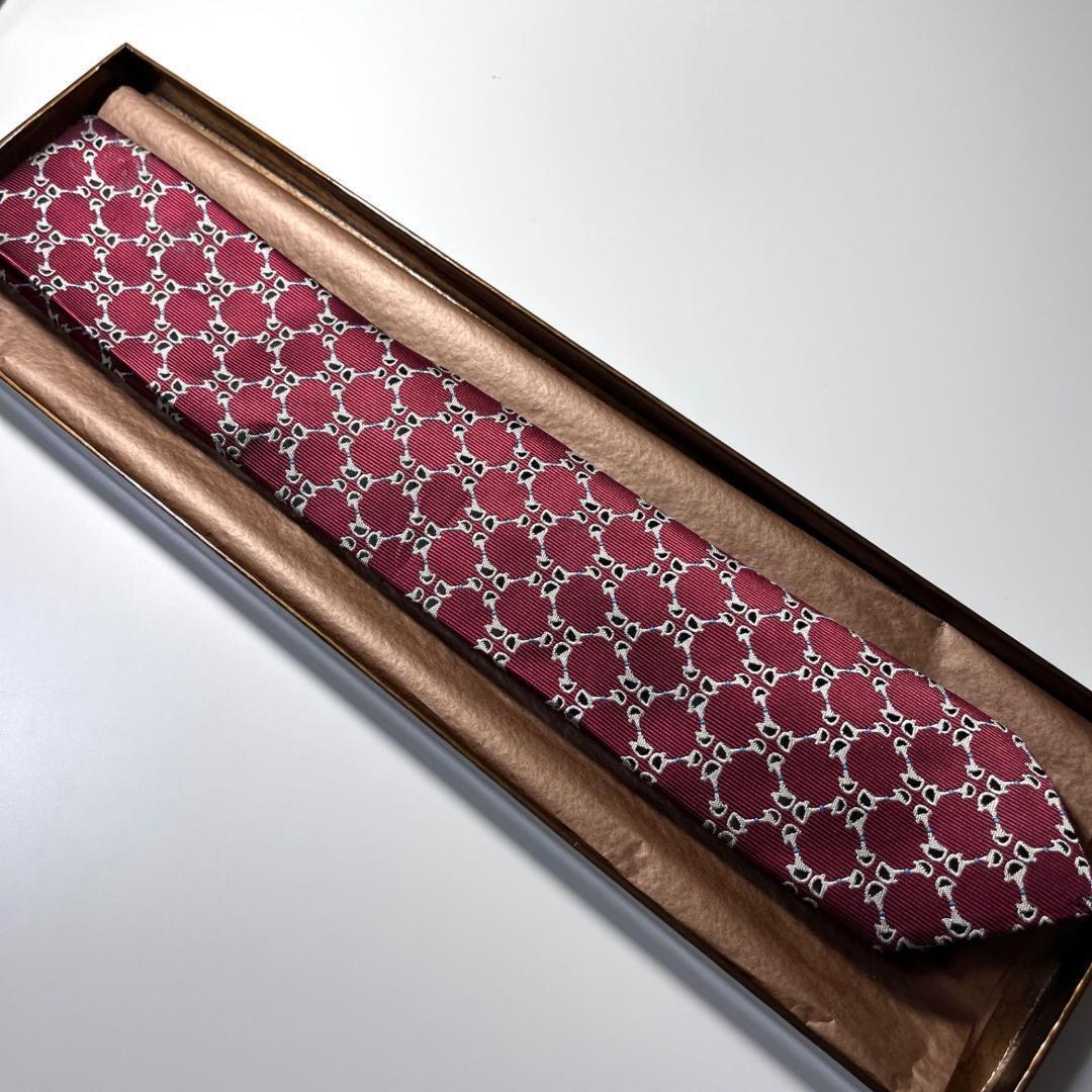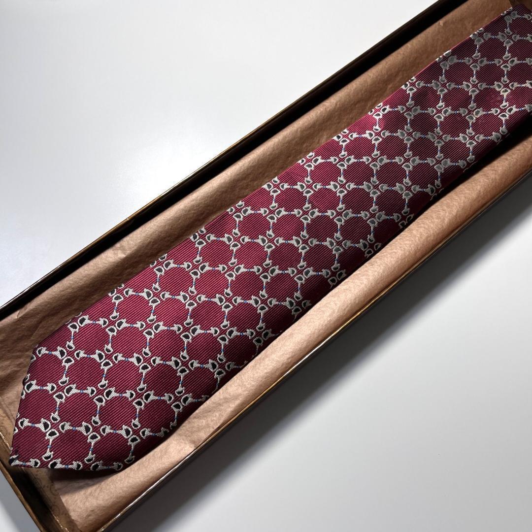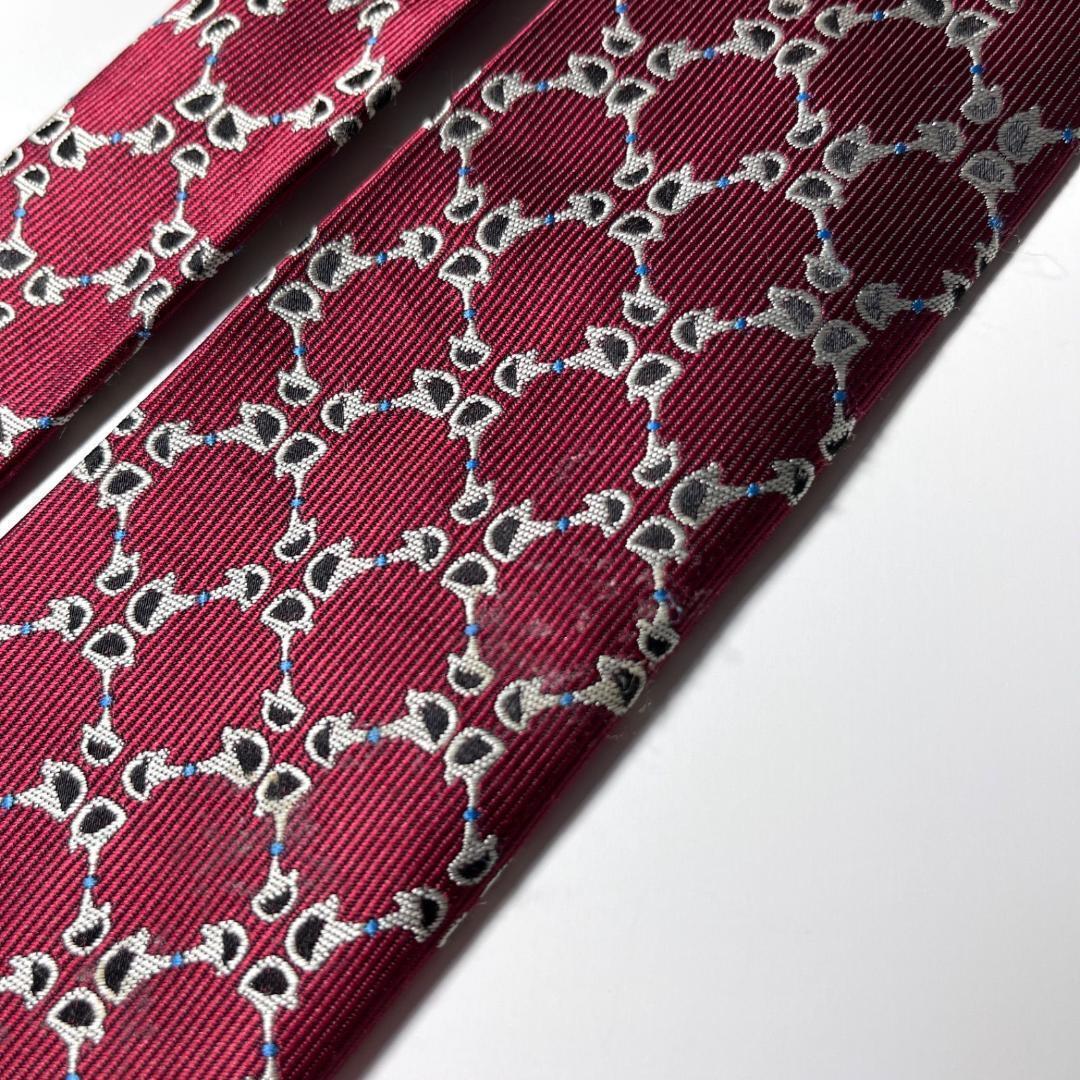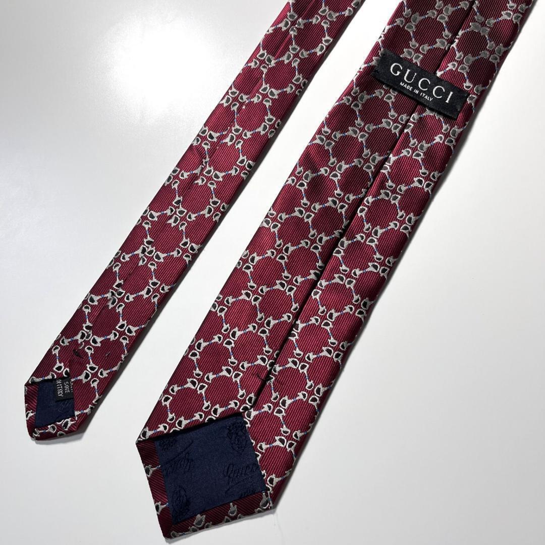 ★未使用級★ GUCCI グッチ ネクタイ シルク100% ワインレッド 総柄 【正規品/本物保証】