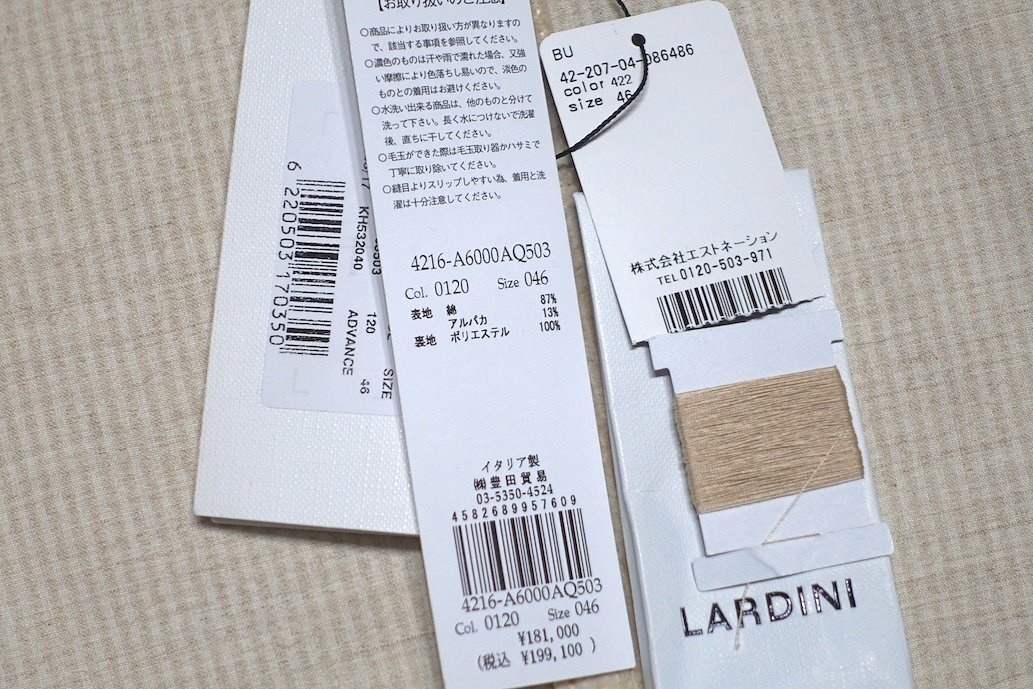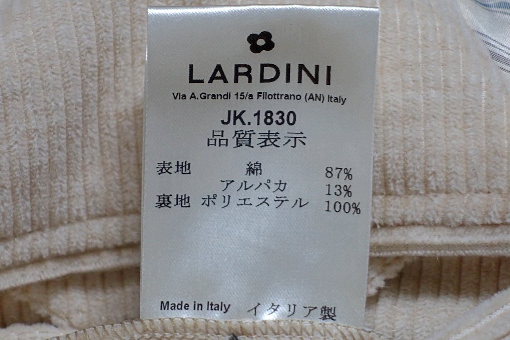 ブートニエール付 24AW 定価19.9万 極美品 LARDINI ラルディーニ ADVANCE コットンアルパカ コーデュロイ テーラードジャケット メンズ 46