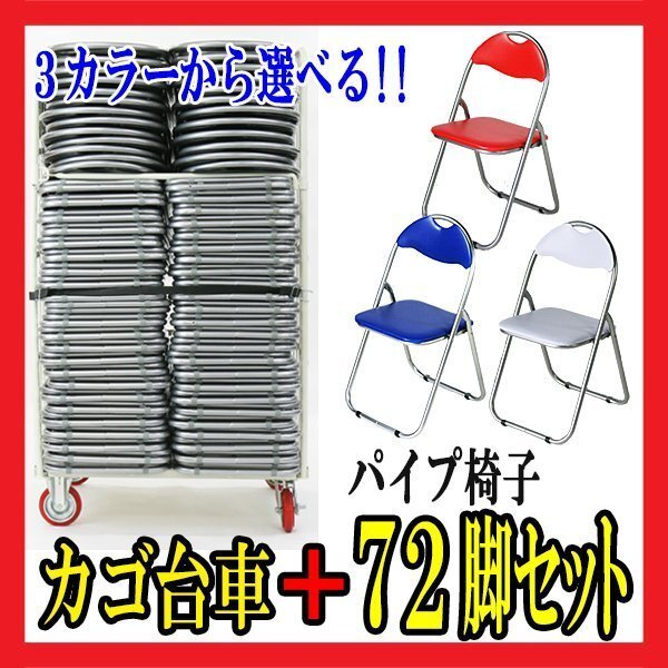 商品名 | 送料無料 72脚セット パイプイス カラー選択 カゴ台車付き 折りたたみパイプ椅子 ミーティングチェア 会議イス 会議椅子 パイプチェア パイプ椅子 X カゴ台車 収納台車 xc72set |