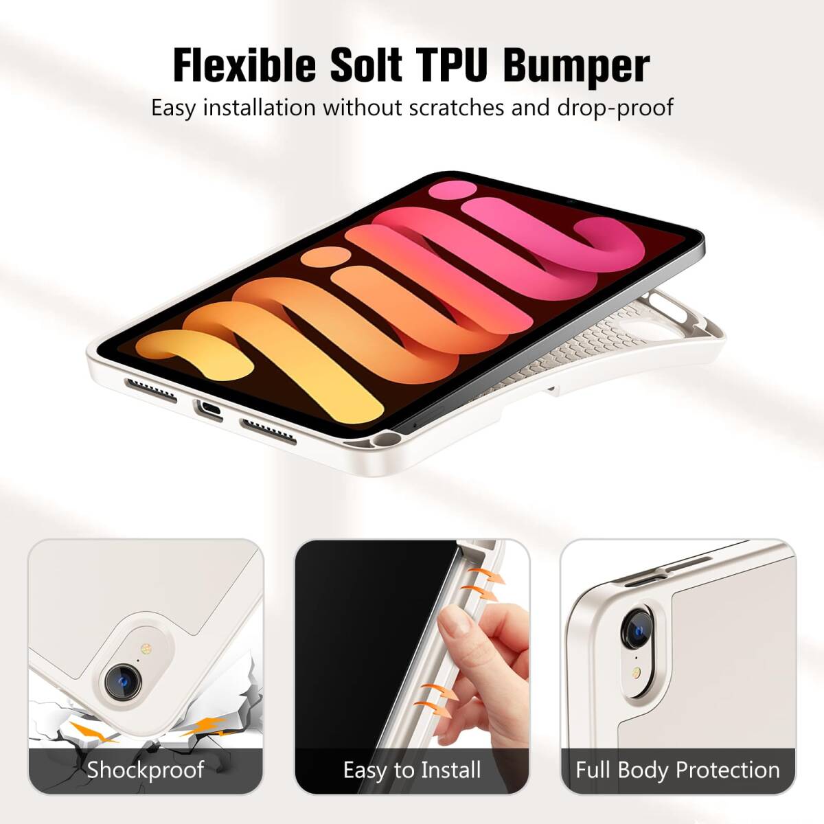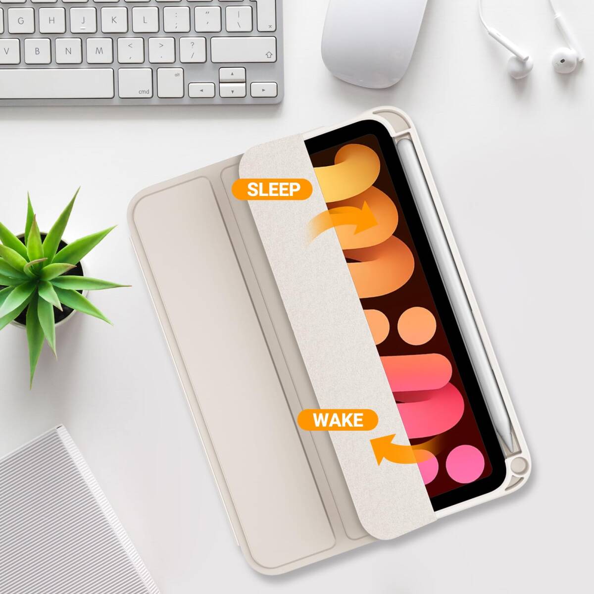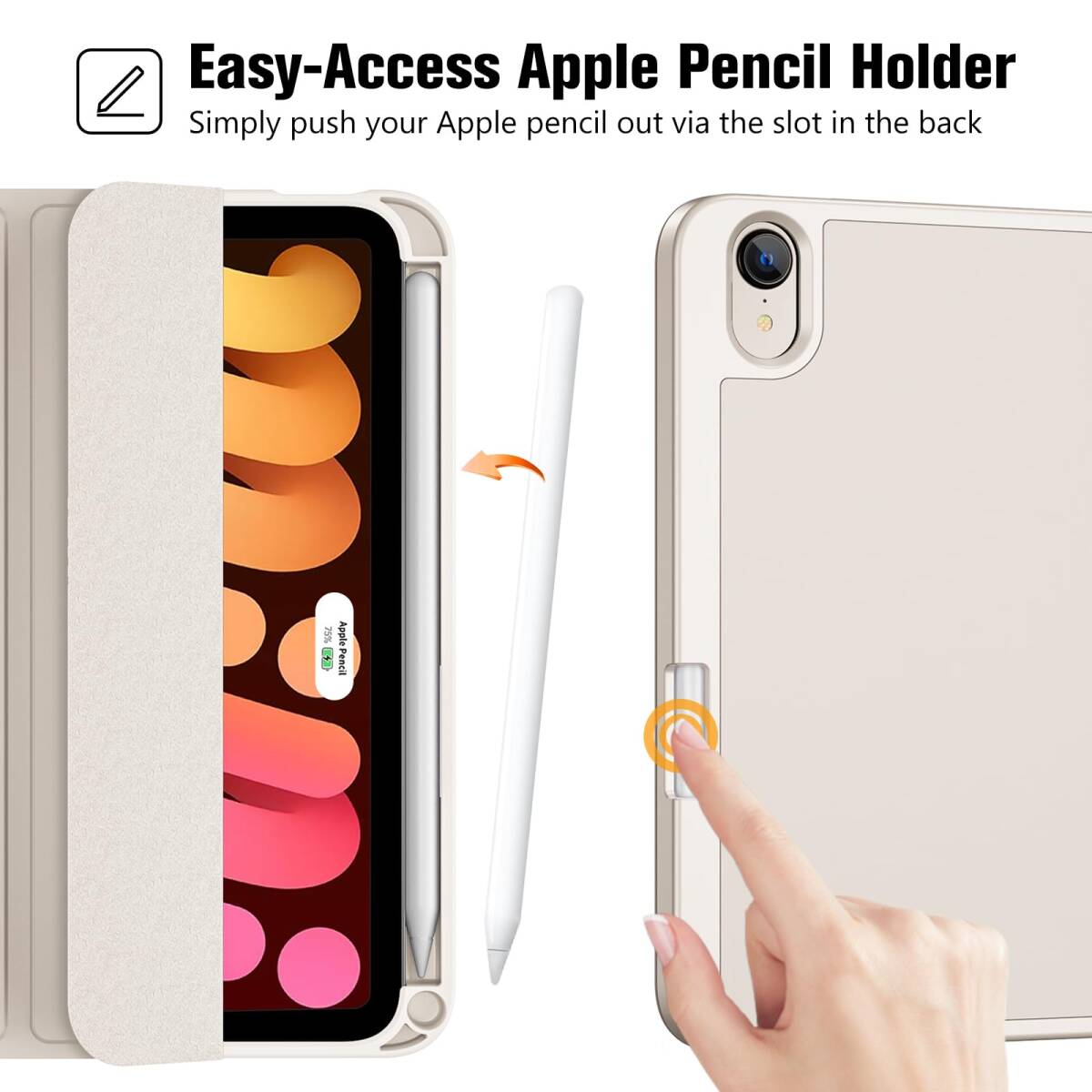 ProCase iPad Mini A17 Pro 第7世代 (2024発売) Mini6 第6世代 (2021発売) ケース 8.3インチ ペンホルダー付き オートスリープ/ウェイク機能 耐衝撃 三つ折りスタンド 適用機種:iPad Mini A17 Pro 第7世代 2024、iPad Mini 6世代 2021 - スターライト