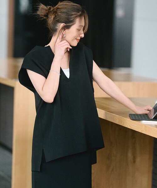参考商品名:【洗える・軽量】フォルムニットジレ