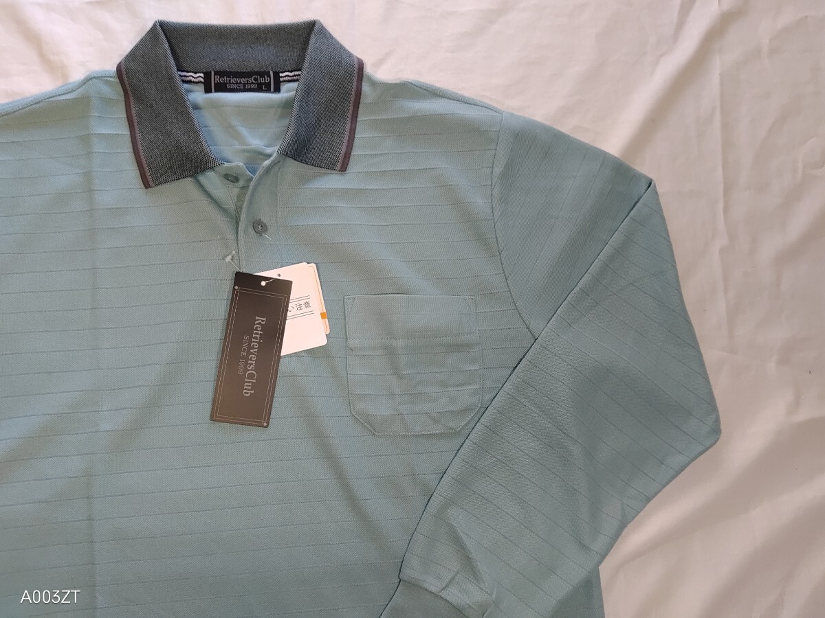 上品な無地ドビー柄の長袖ポロシャツです、柔らかく肌触り良く気持ち良く着用出来ます