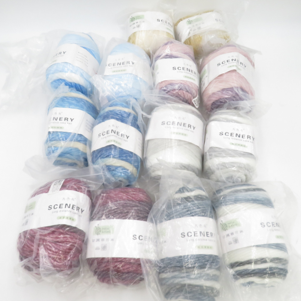 | 毛糸 九色? SCENERY 14玉セット グラデーション ロングディスタンスケーキボール 7色アソート コットン&ウール混 秋冬毛糸 未使用品 |