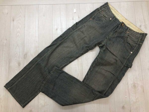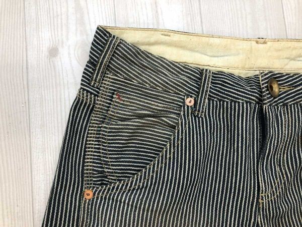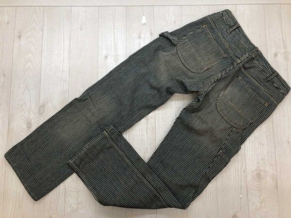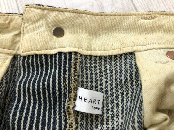 HEART MARKET ハートマーケット Love&Smile アメカジ MORI-KEI 古着 ヒッコリー デニム ワーク パンツ ボトムス レディース 綿100% S 紺 です。