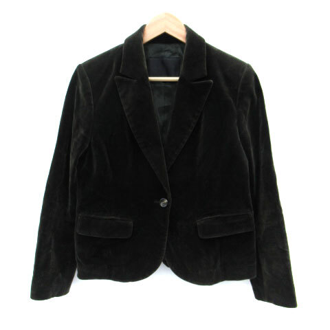 リフレクト Reflect テーラードジャケット ミドル丈 シングルボタン 総裏地 ベロア 44 XXL 大きいサイズ ダークブラウン レディース