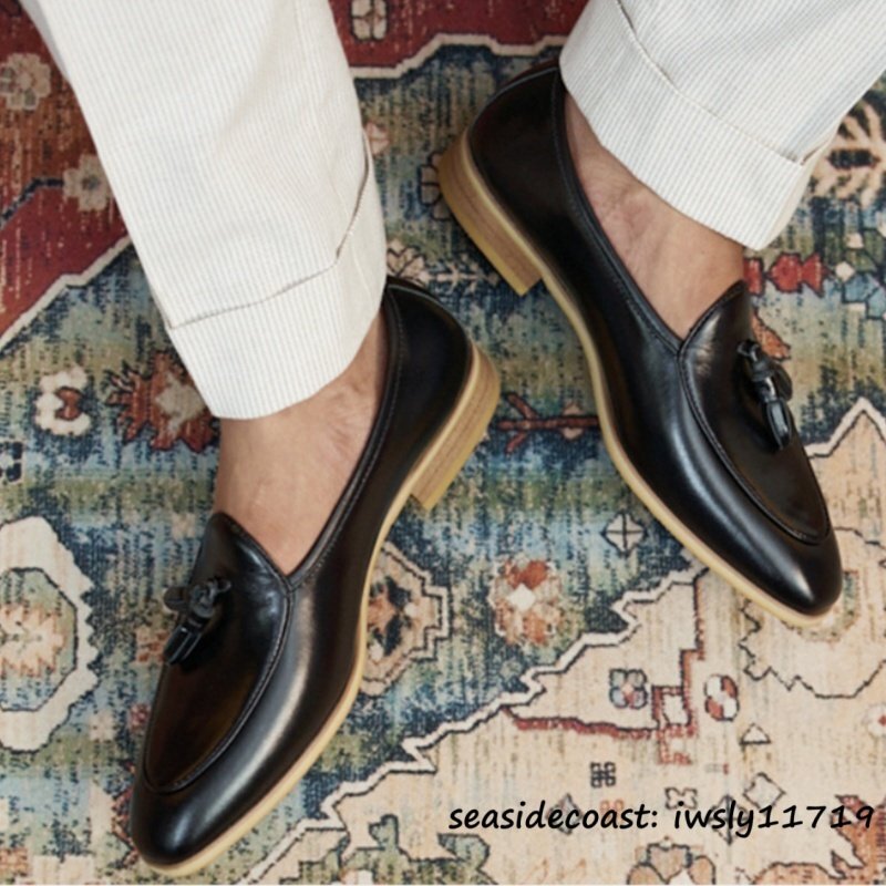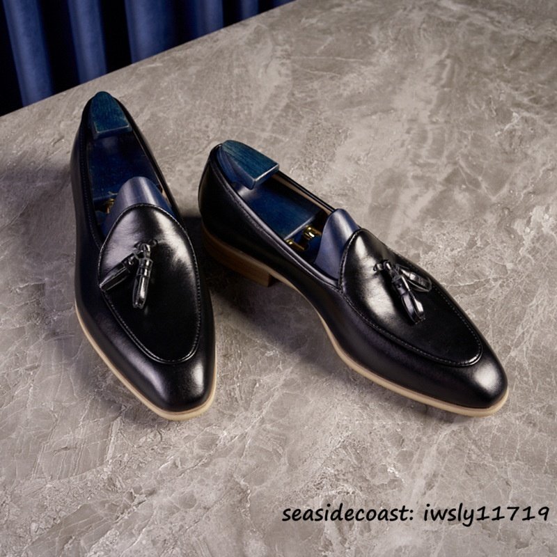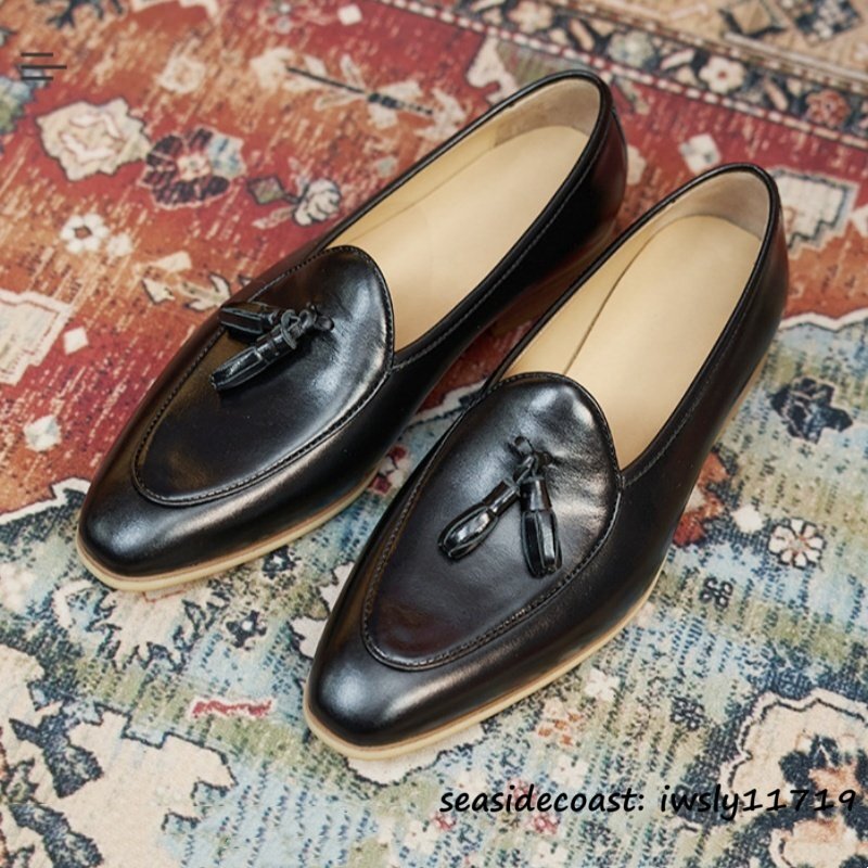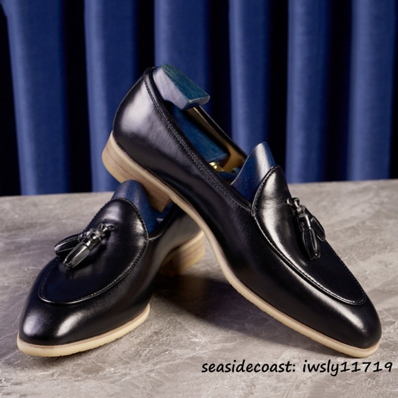 入手困難◆メンズ ローファー 本革 タッセル スリッポン 職人手作り ビジネスシューズ 高級本革 レザーシューズ 冠婚葬祭 ブラック 28.0cm