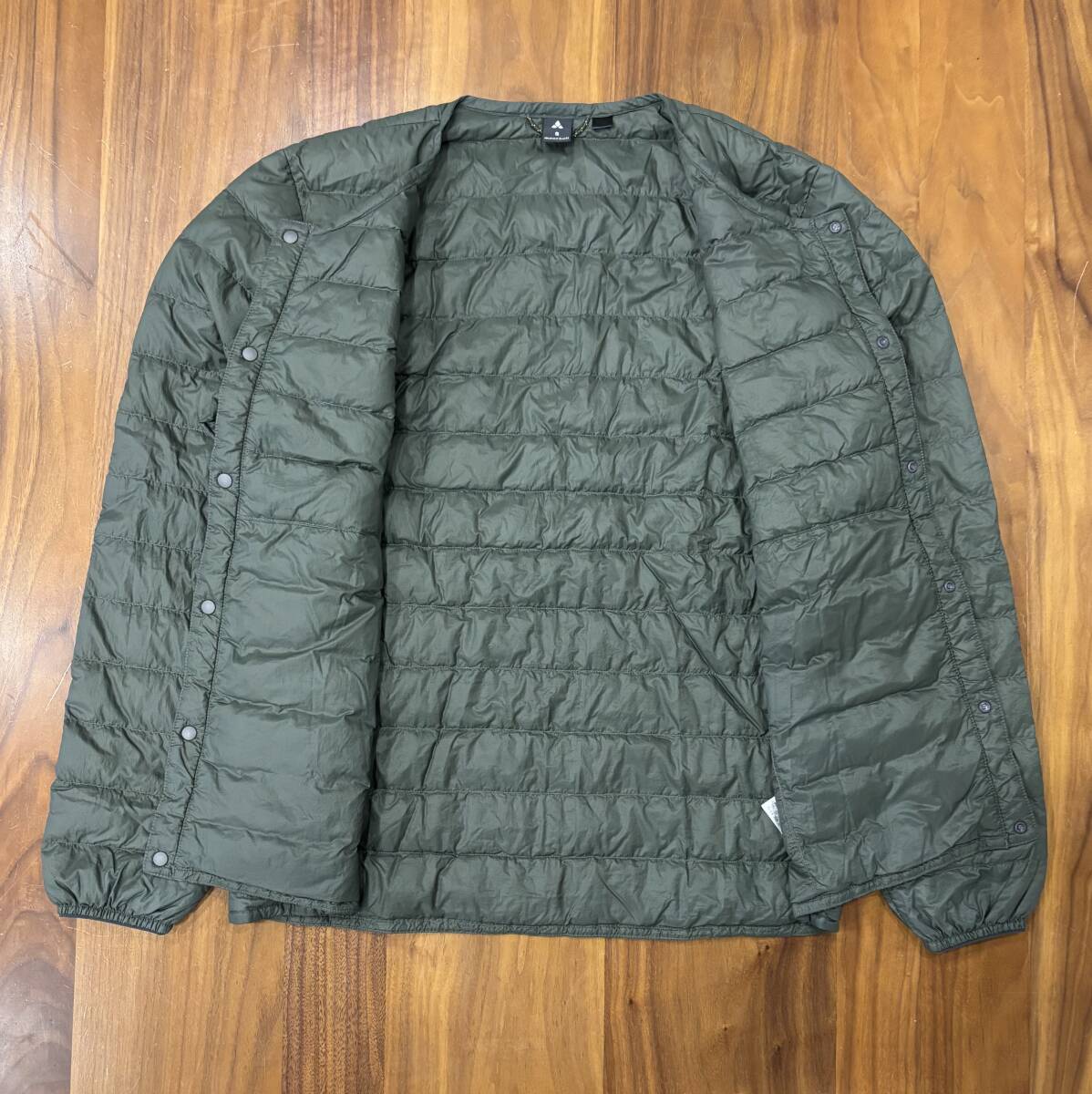 高品質な800フィルパワー・EXダウンを、光沢を抑えたしなやかな生地で包み込んだジャケットです。中間着として着用しやすいシルエットを採用し、アウターの襟元と干渉しにくい丸首タイプです。フロントはスナップボタン仕様なので、アウターを着用した際にもごわつきにくくなっています。