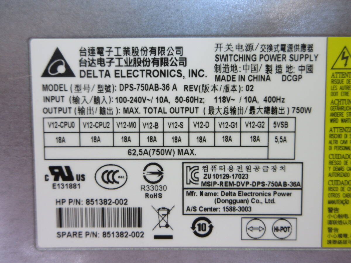 | HP Z4 G4 Workstation 純正電源ユニット 750W / Delta DPS-750AB-36A / 高効率 80PLUS相当 / No.Y864 | ||||||||||||||||||||||||||||||||||||||||