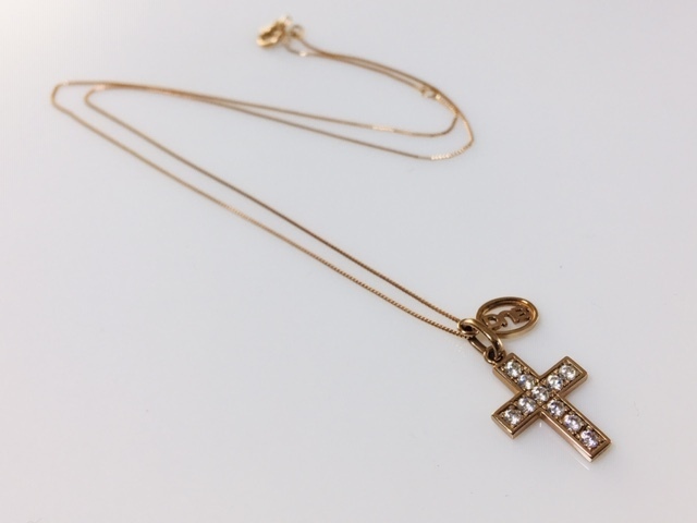 キュービックジルコニアのクロスは、エレガントに輝きを放ちます。