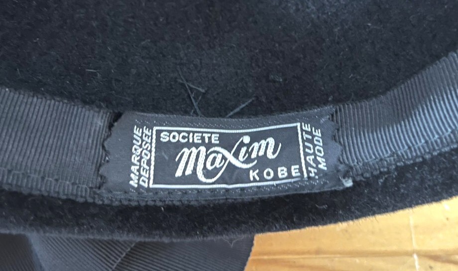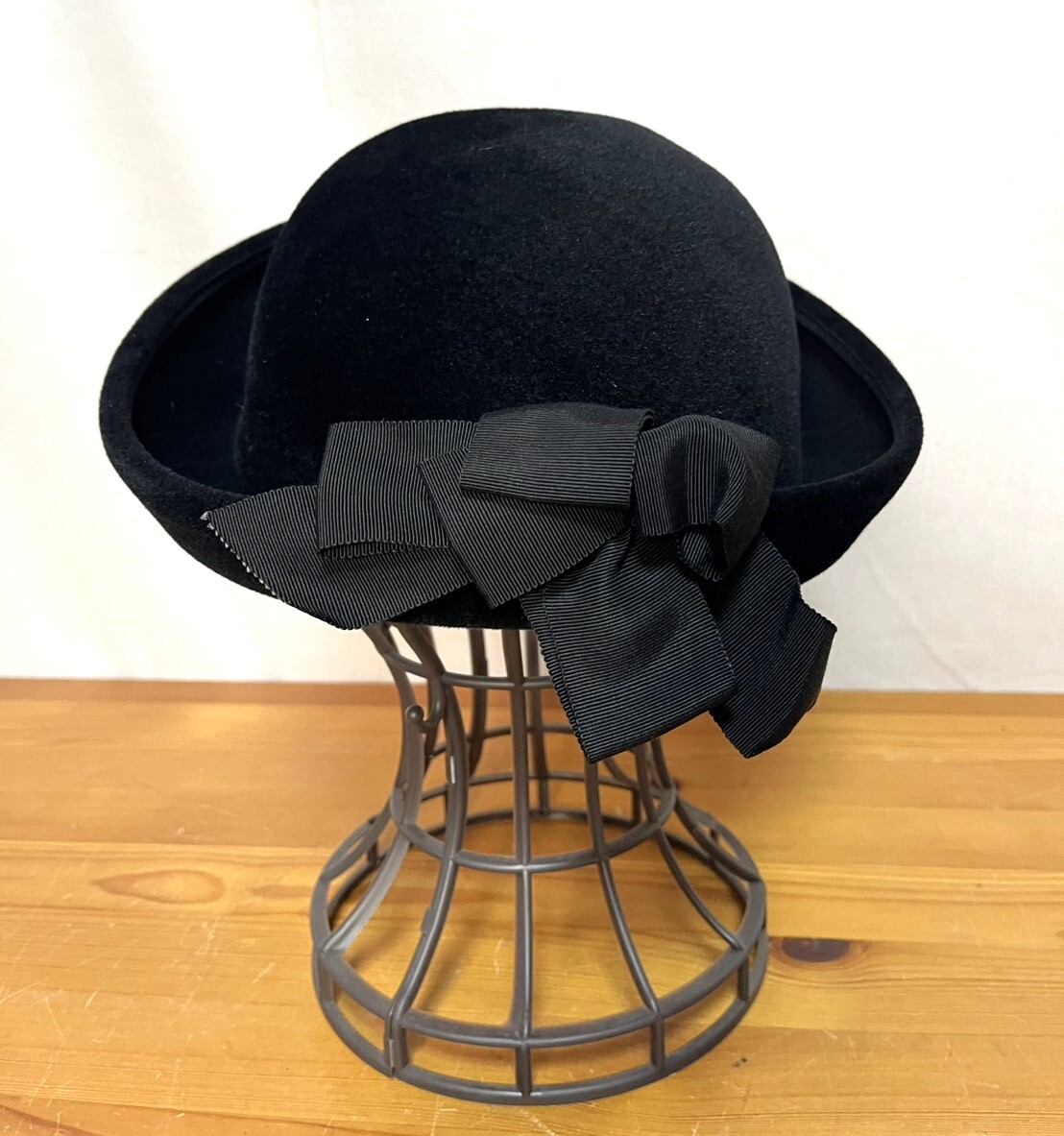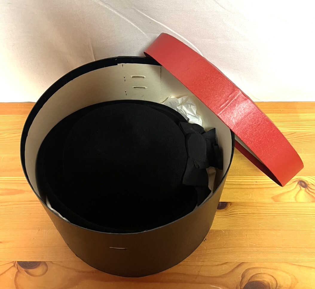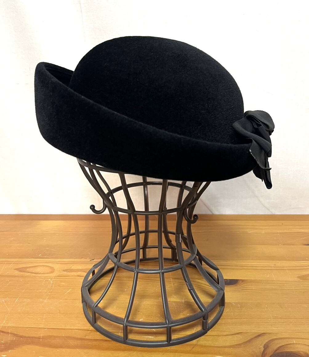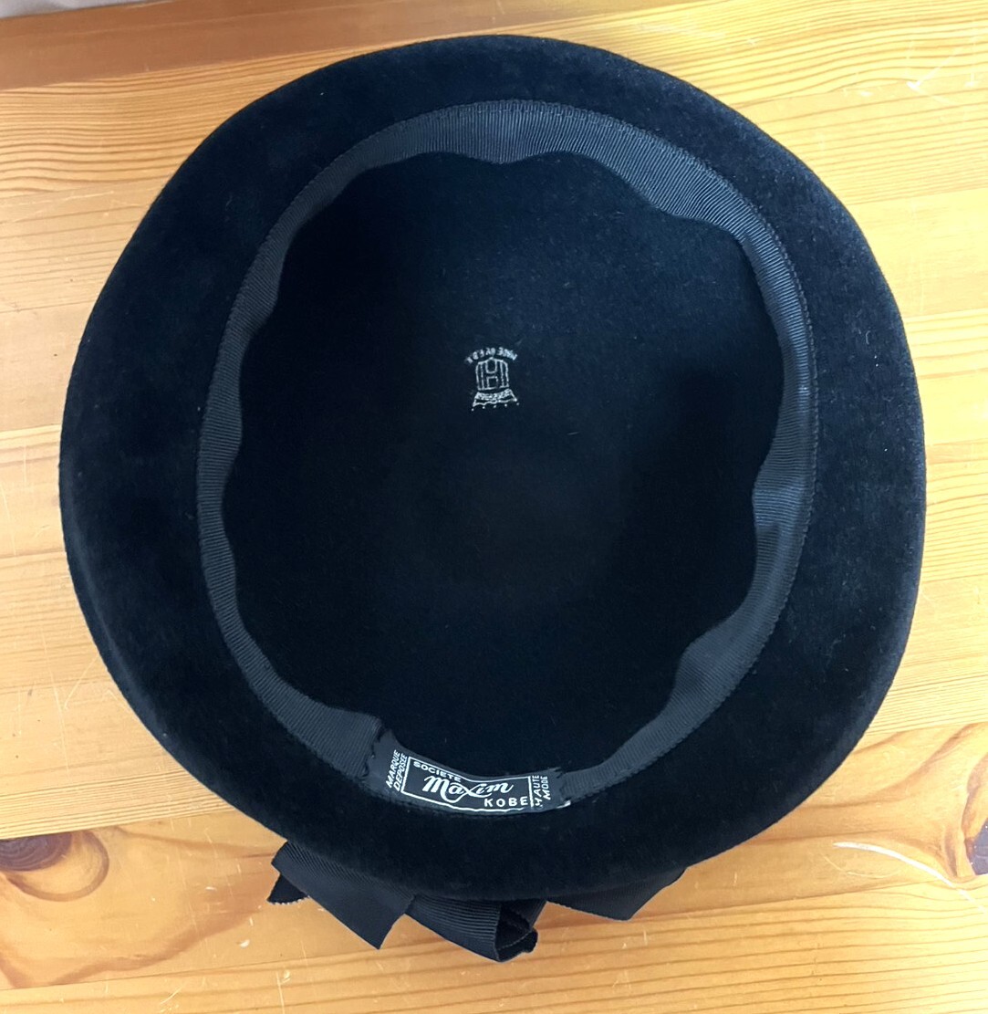 【S240】maxim/マキシム/レディース/ベロア調/ハット/帽子/リボン/ブラック/フォーマル/箱入り/中古