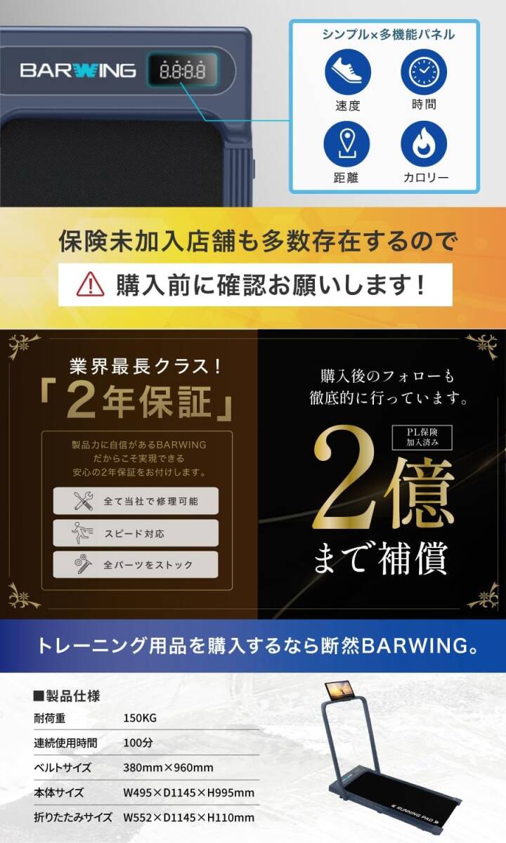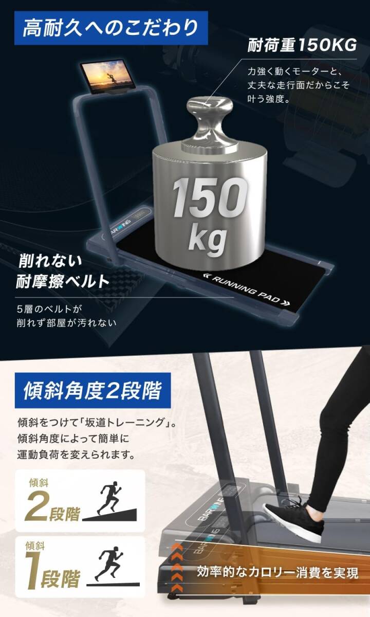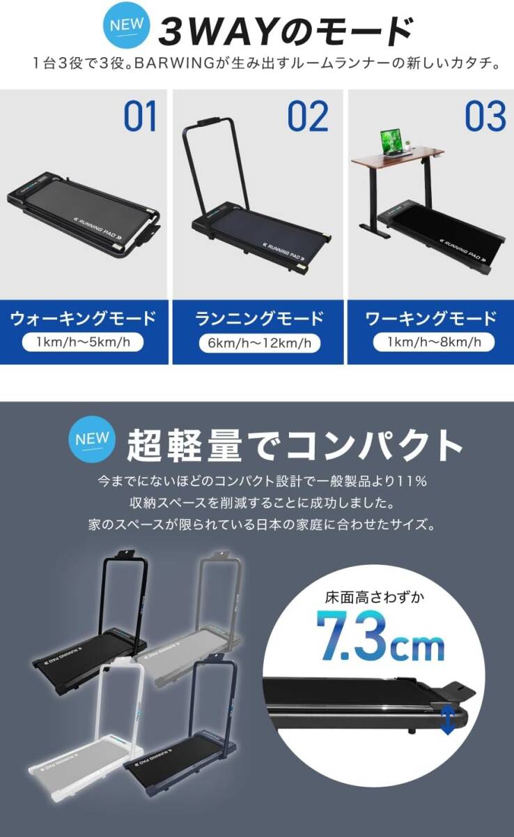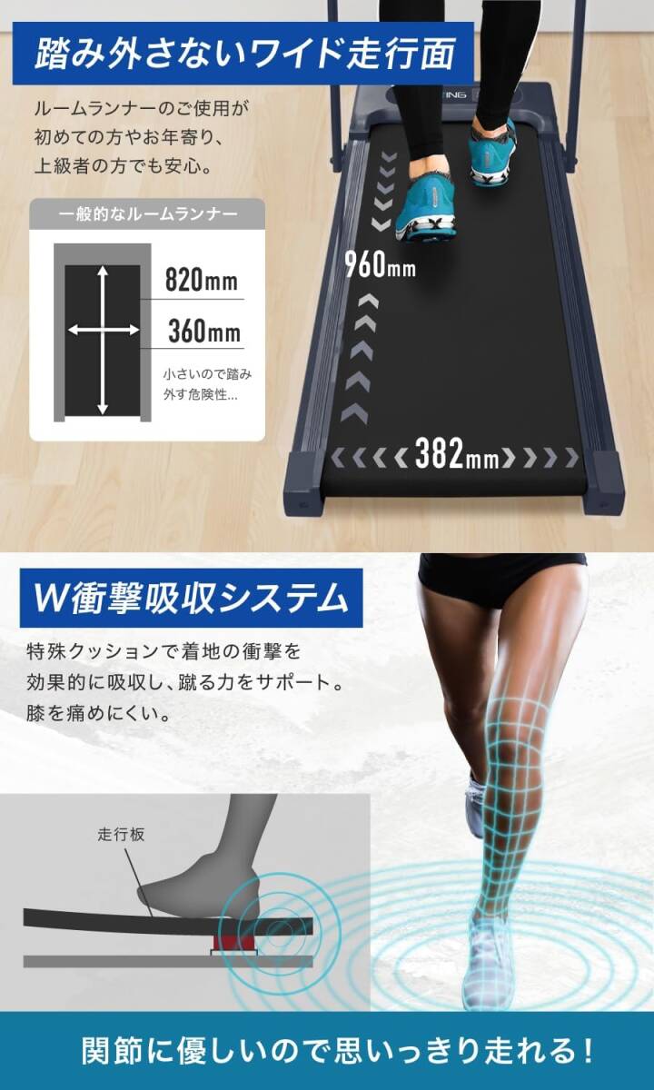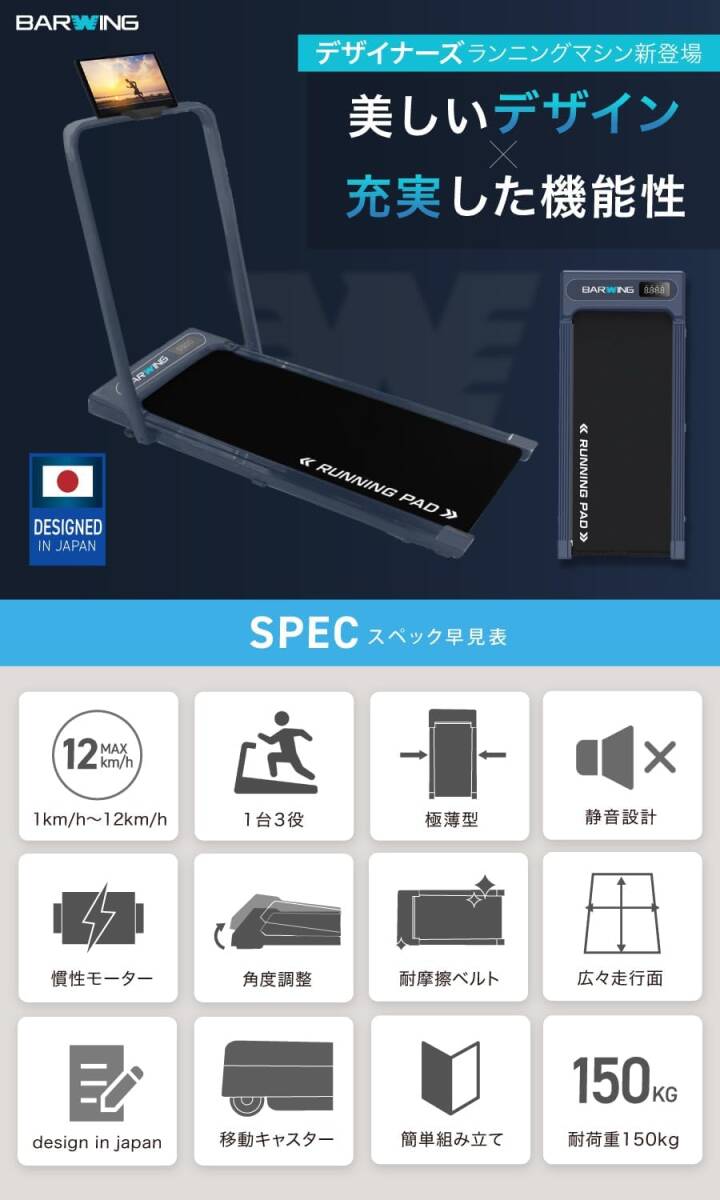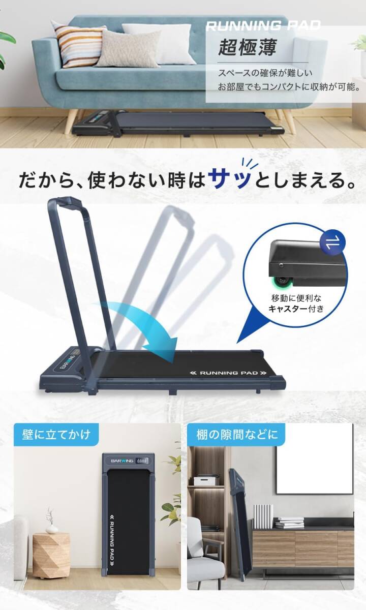 ネイビー色 バーウィング ランニングパット ルームランナー ハンドル無し MAX10km/h MAX12km/hランニングマシン