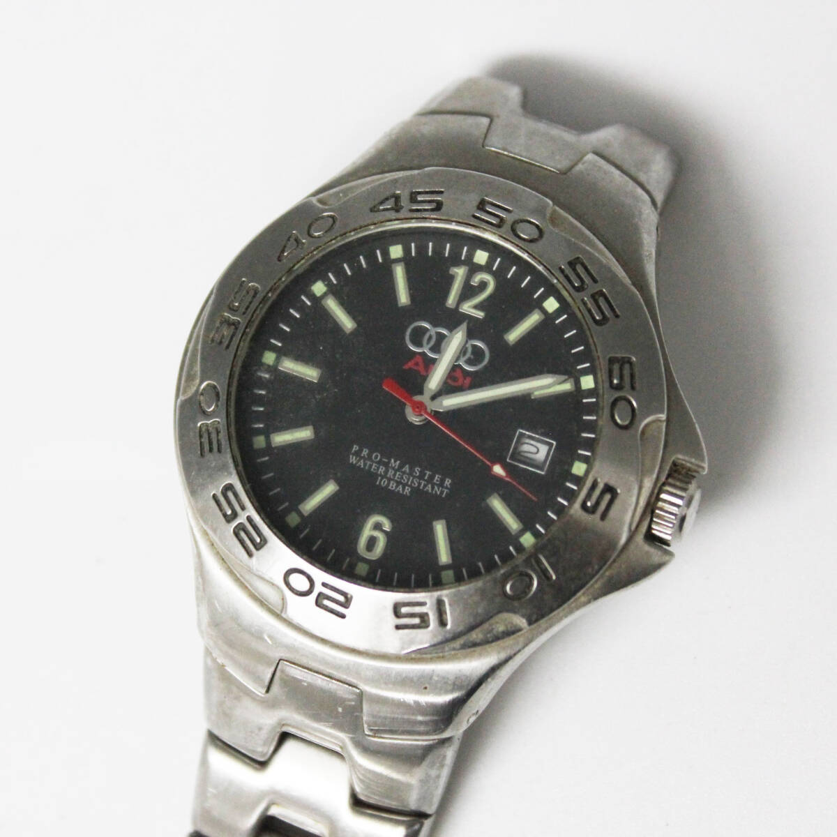 W251003-22 Audi アウディ PRO-MASTER メンズ腕時計 クォーツ デイト ジャンク 文字盤ブラック