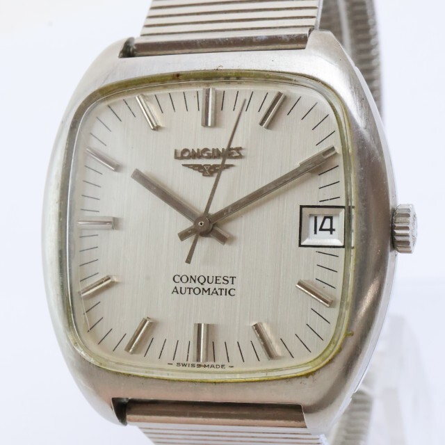 | 2510-523 AT ロンジン コンクエスト オートマチック 腕時計 LONGINES 日付 スクエア 銀色ケース バーインデックス | |||||||