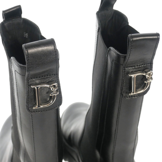 未使用品 ディースクエアード DSQUARED2 23AW D2 Statement レザー チェルシーブーツ サイドゴアブーツ 38 ブラック 黒 S83AB0183 国内正規 レディース