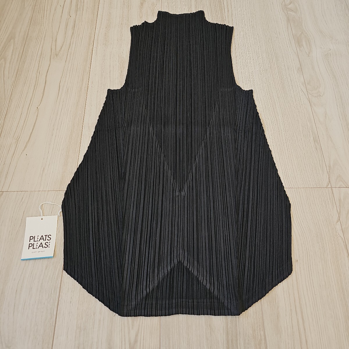 ■新品未使用タグ付き ISSEY MIYAKEイッセイミヤケ PLEATS PLEASE プリーツプリーズ ハイネック ノースリーブ ベスト 黒 ブラックサイズ3
