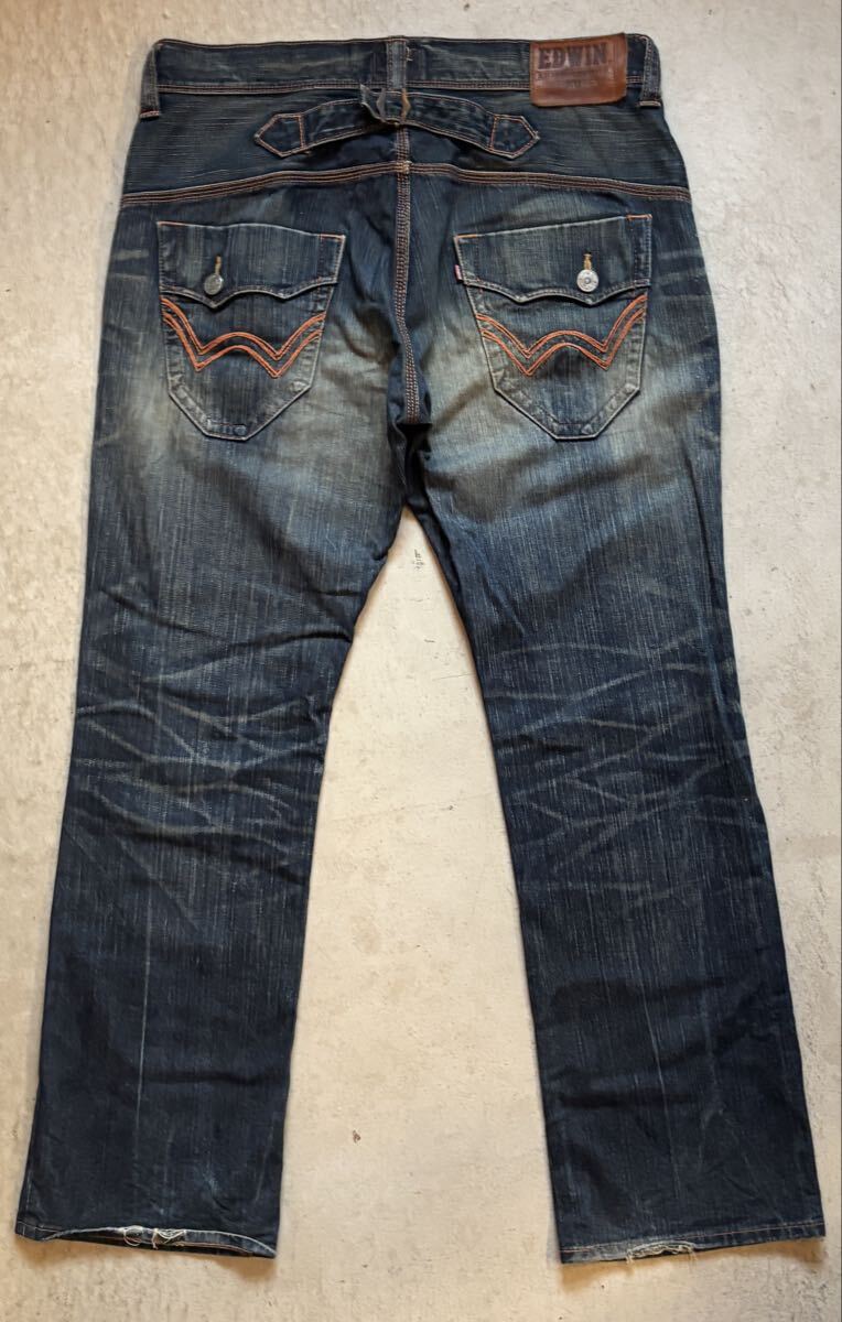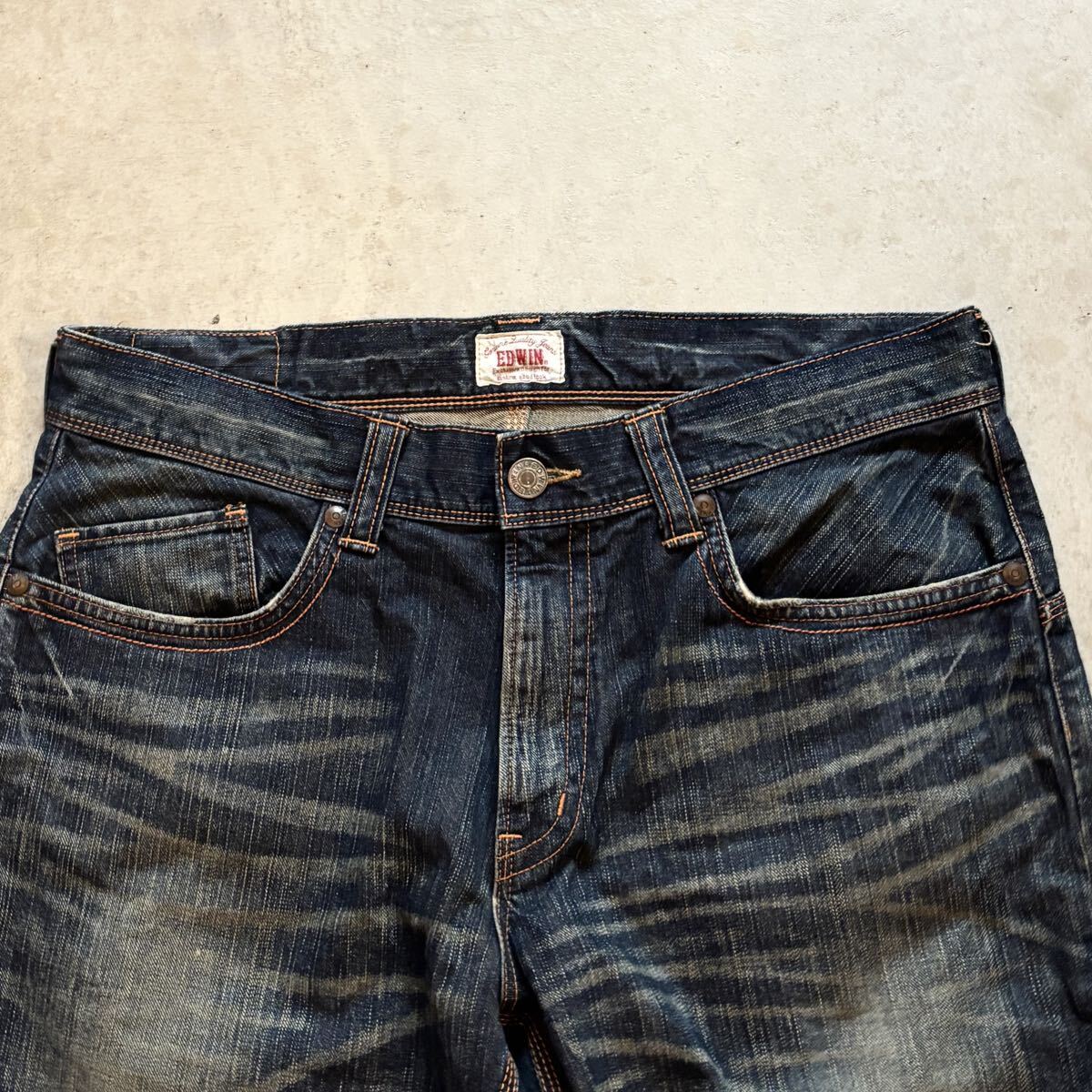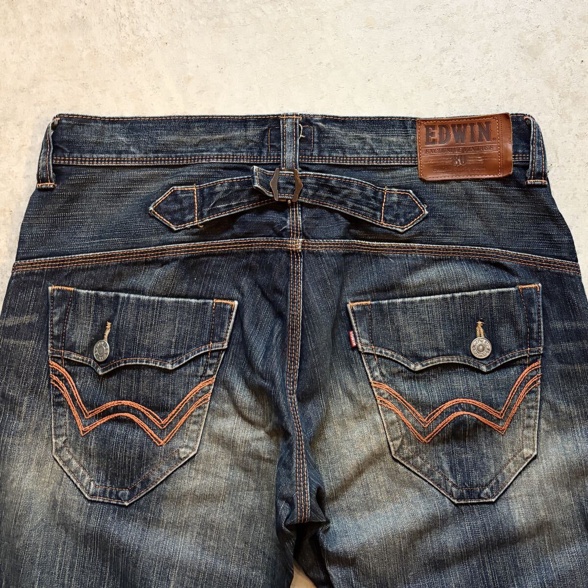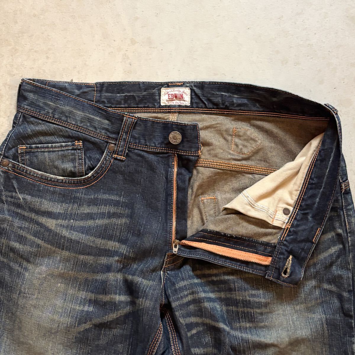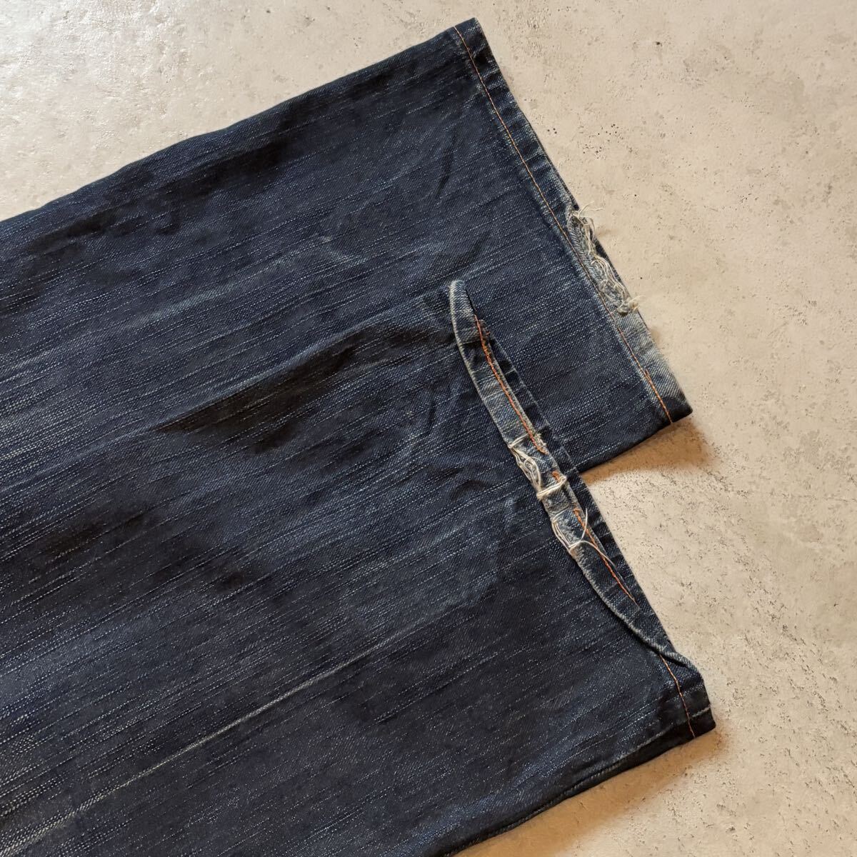ユーズド加工により全体的にビンテージのような風合いのある色落ちが見られる1本