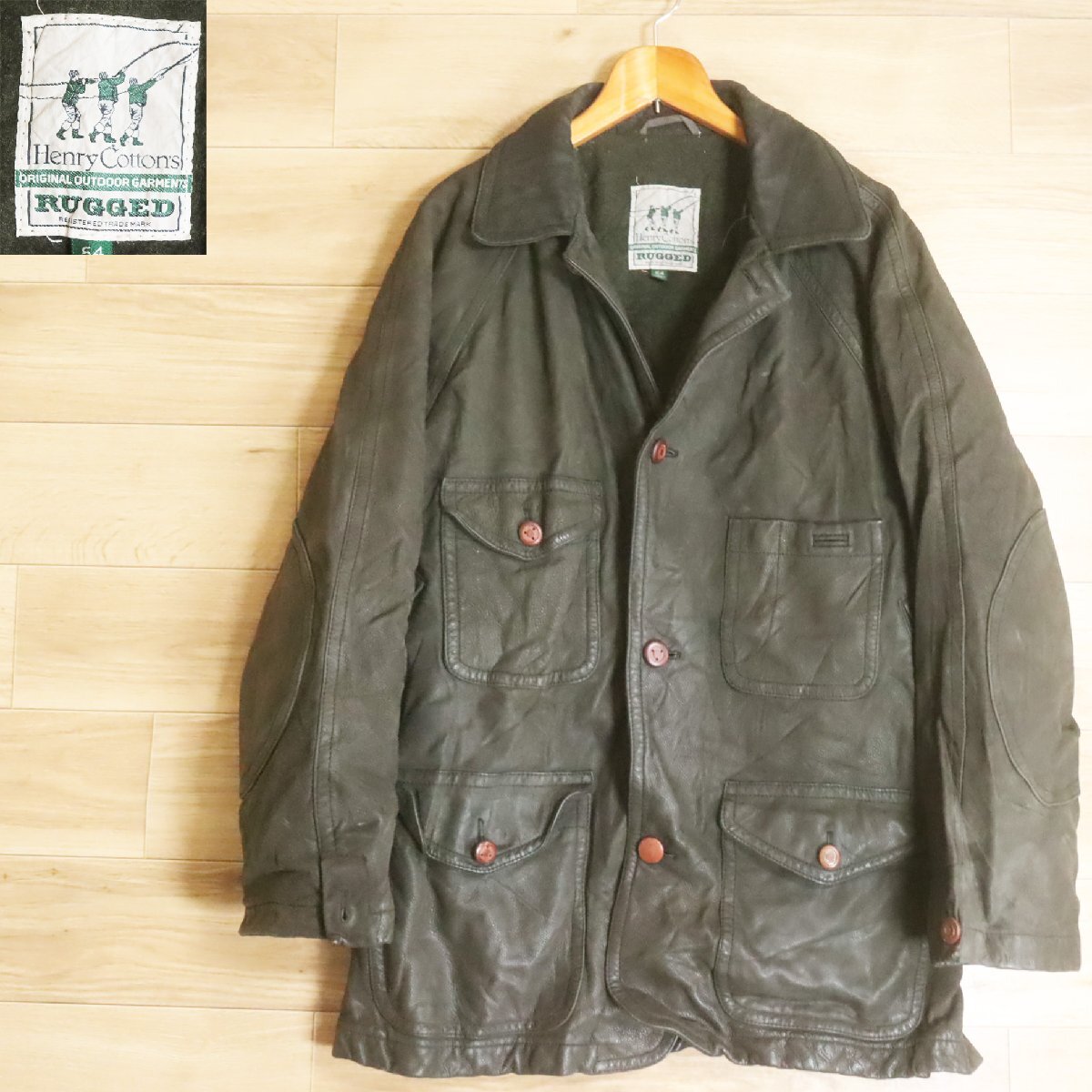 M11T/R6.23-4 イタリア製 Henry Cotton's レザーハンティングジャケット 本革 54 レザージャケット 皮ジャン 革ジャン