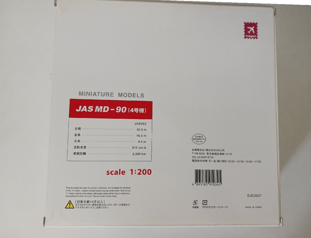 ミニュチュアモデル 1:200 JAS MD-90(4号機)JALUX (現状品)